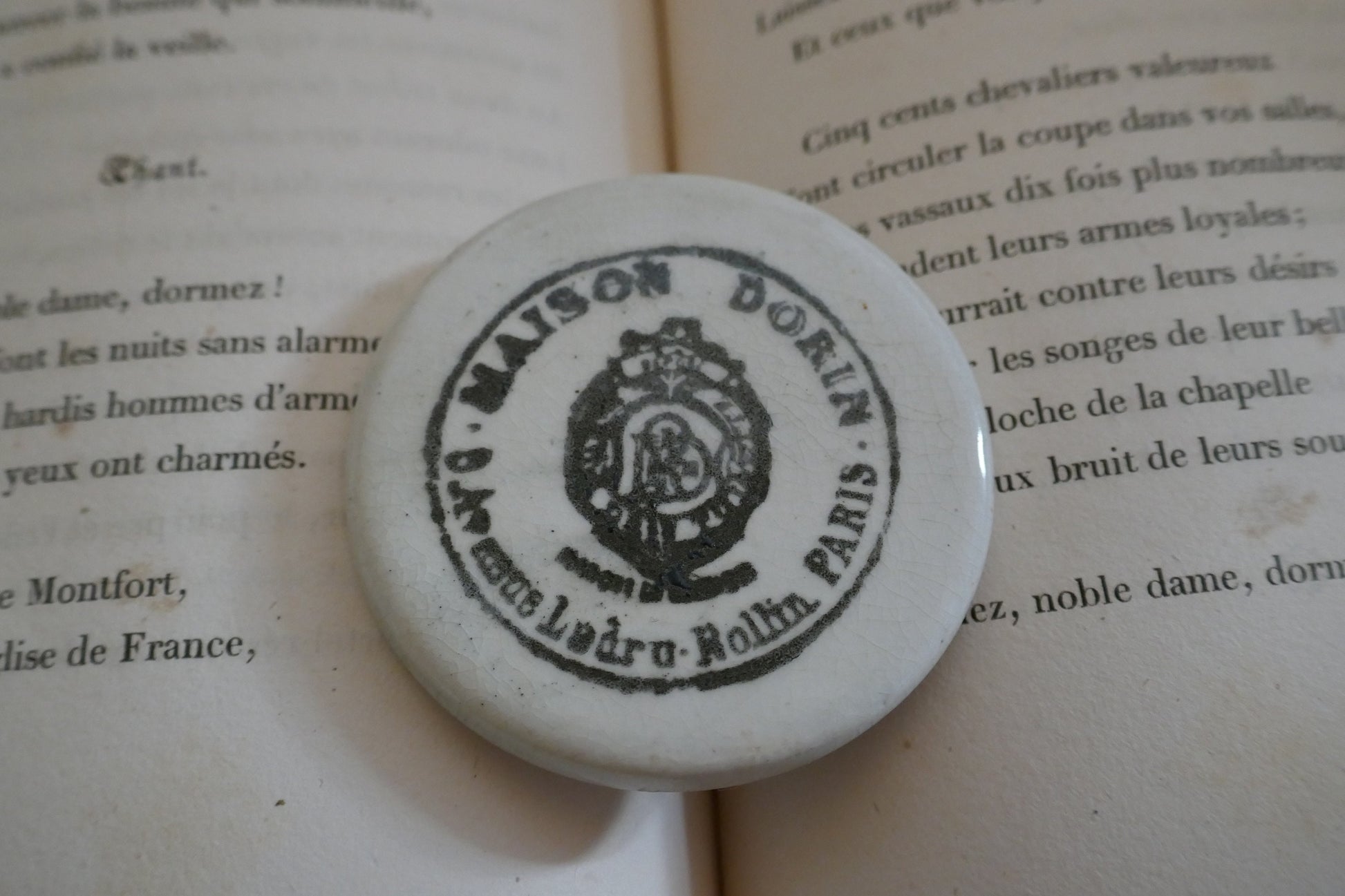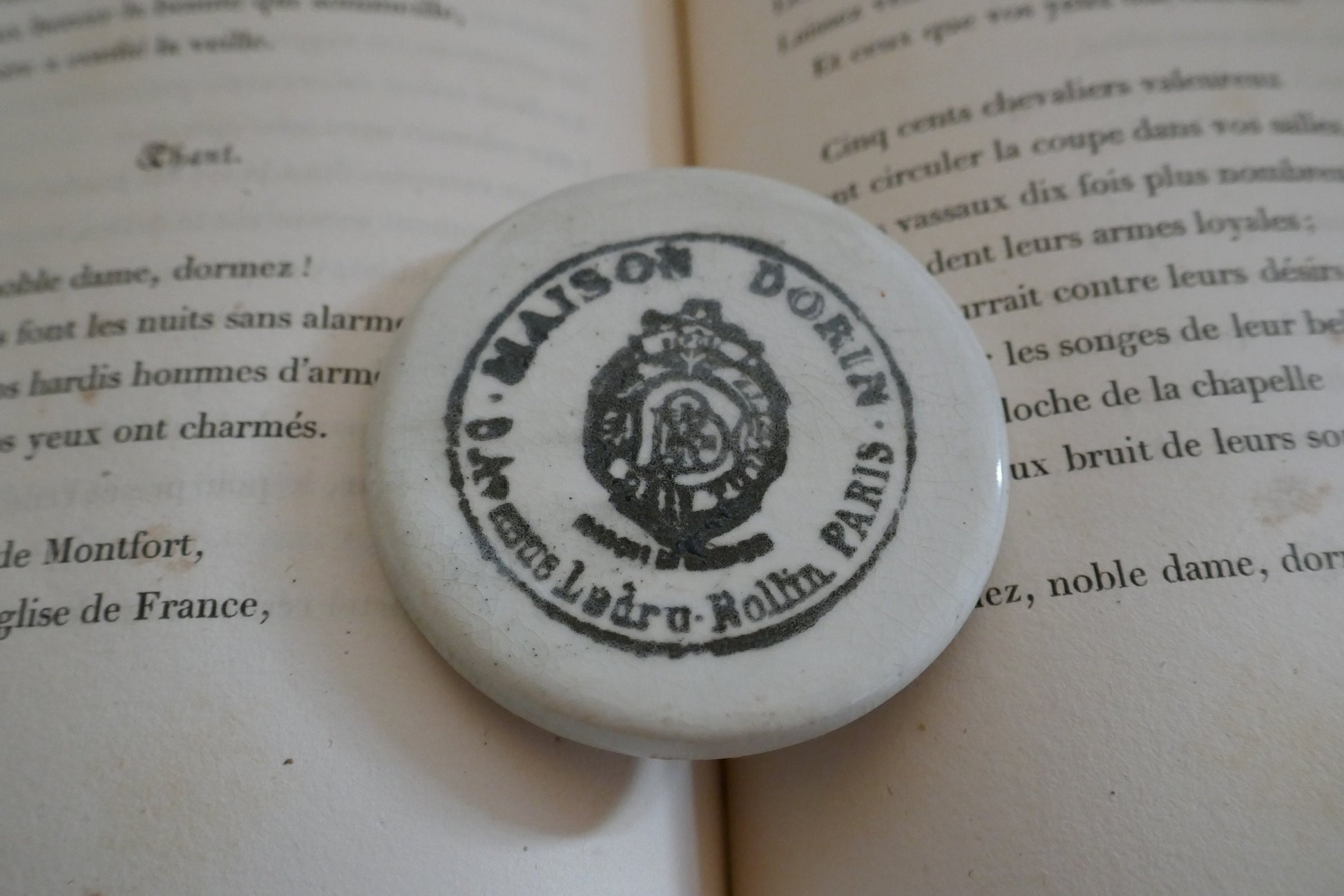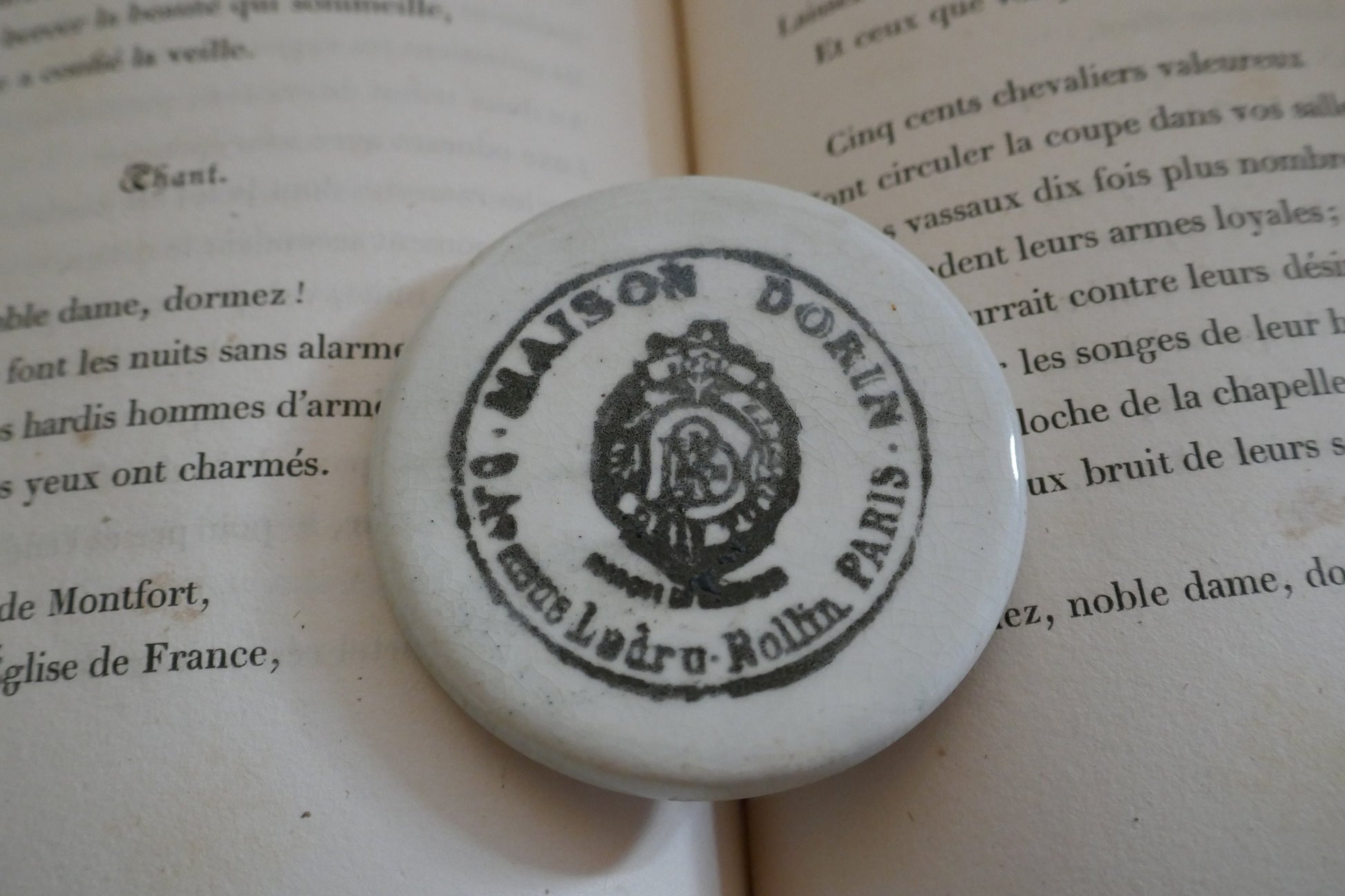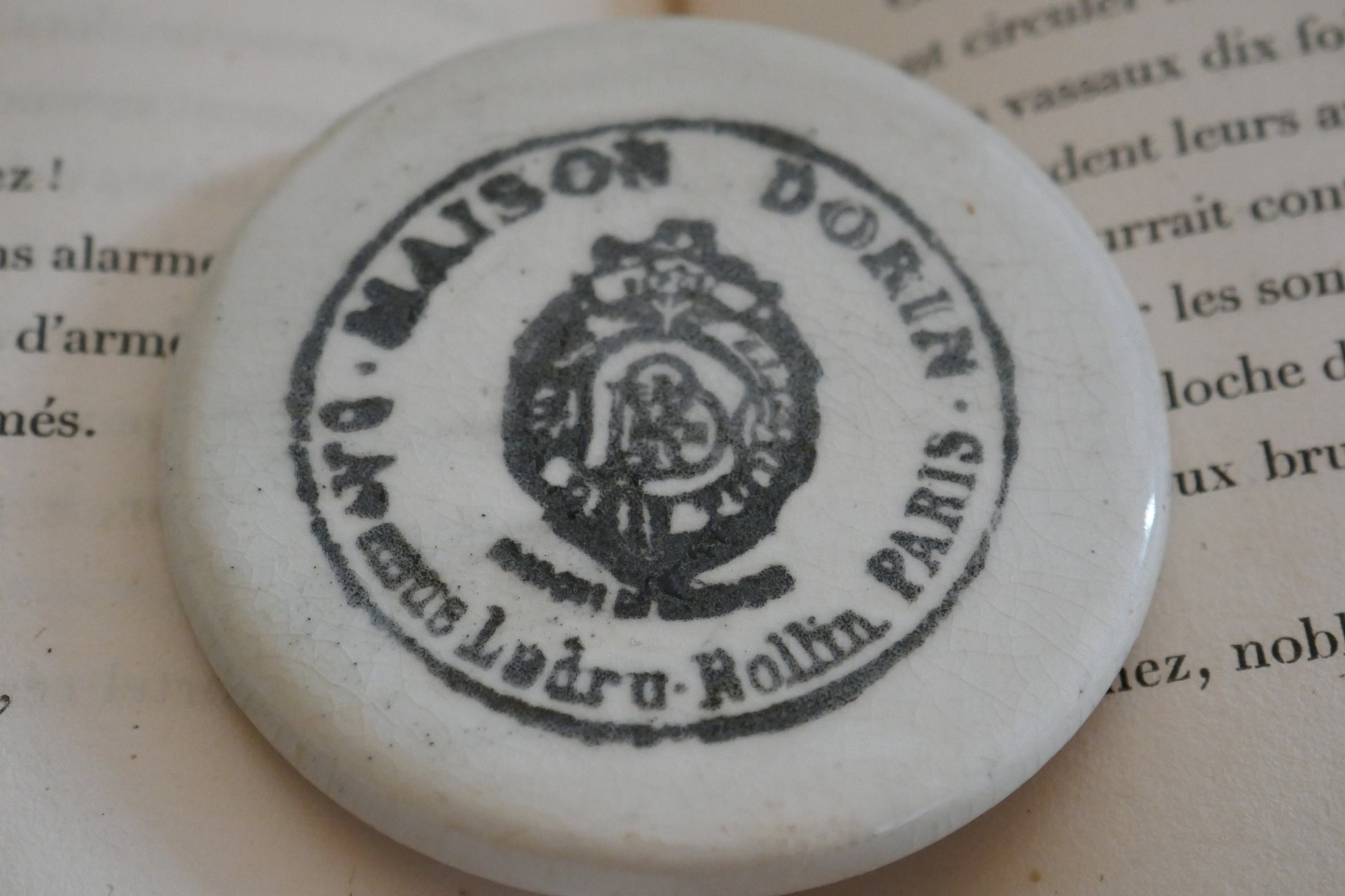 Antique Advertising Pot - Antique Maison Dorin Paris Transfer Printed Victorian Pot Lid - Circa 1890 - Antique Advertising - Farmhouse Decor
