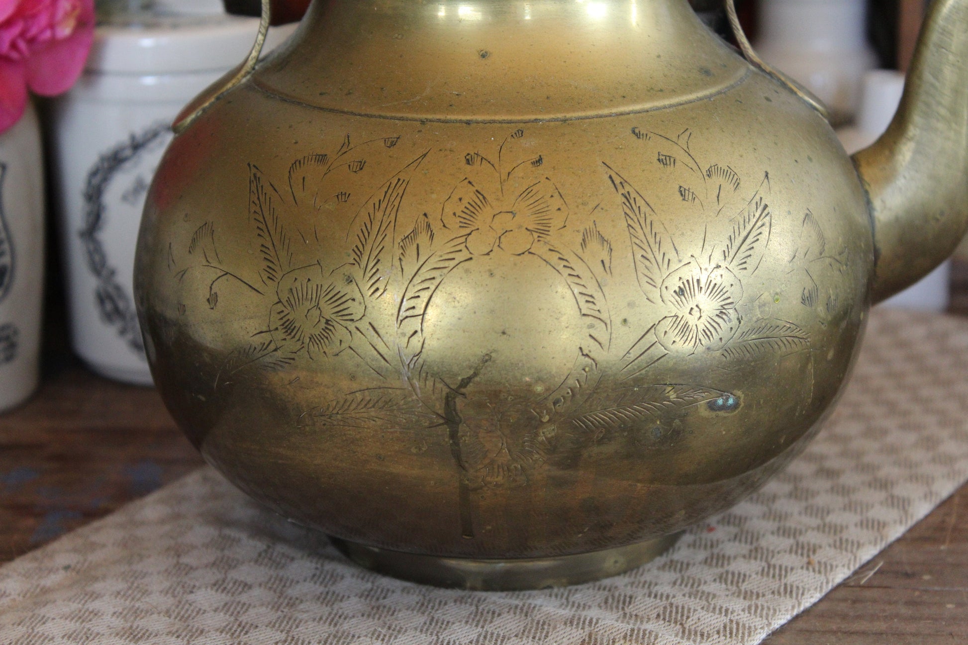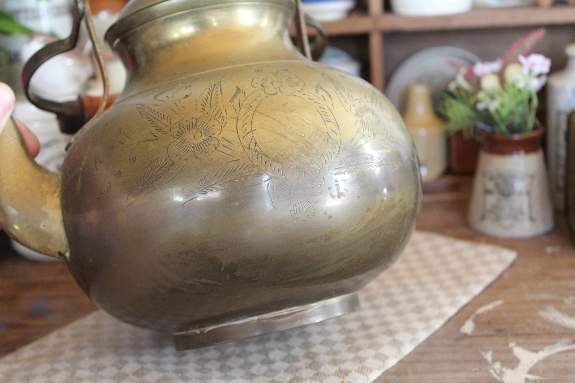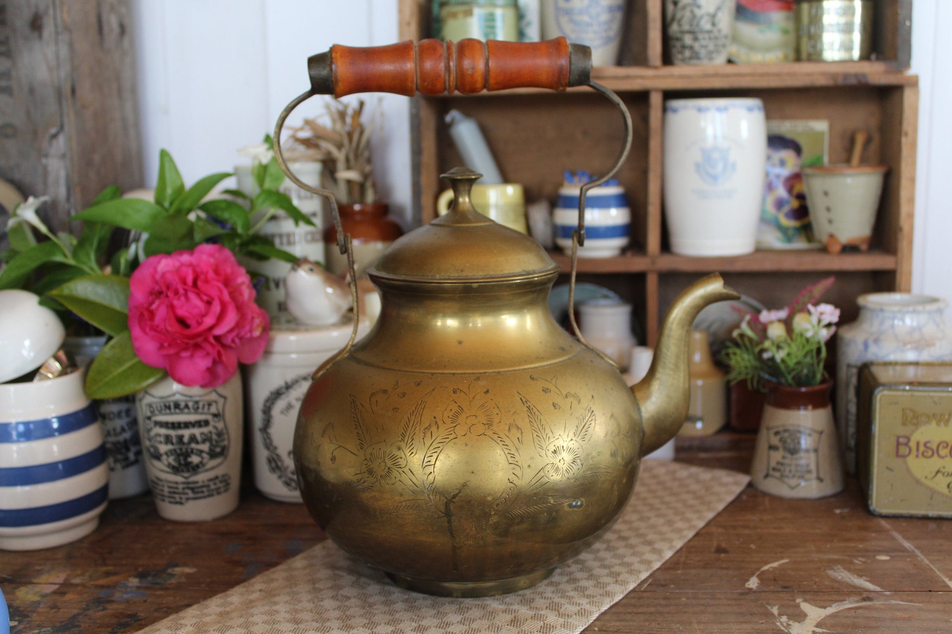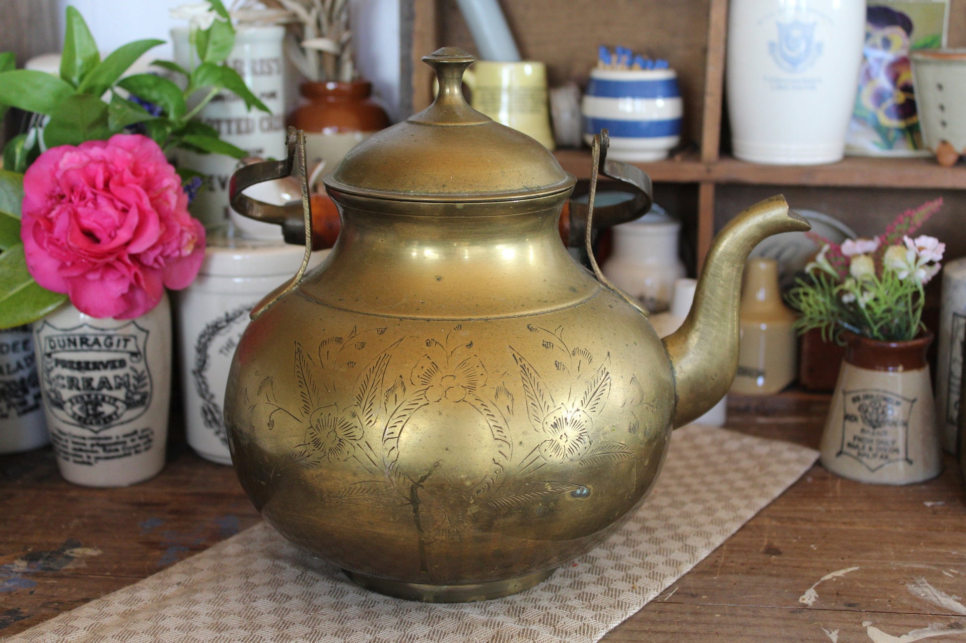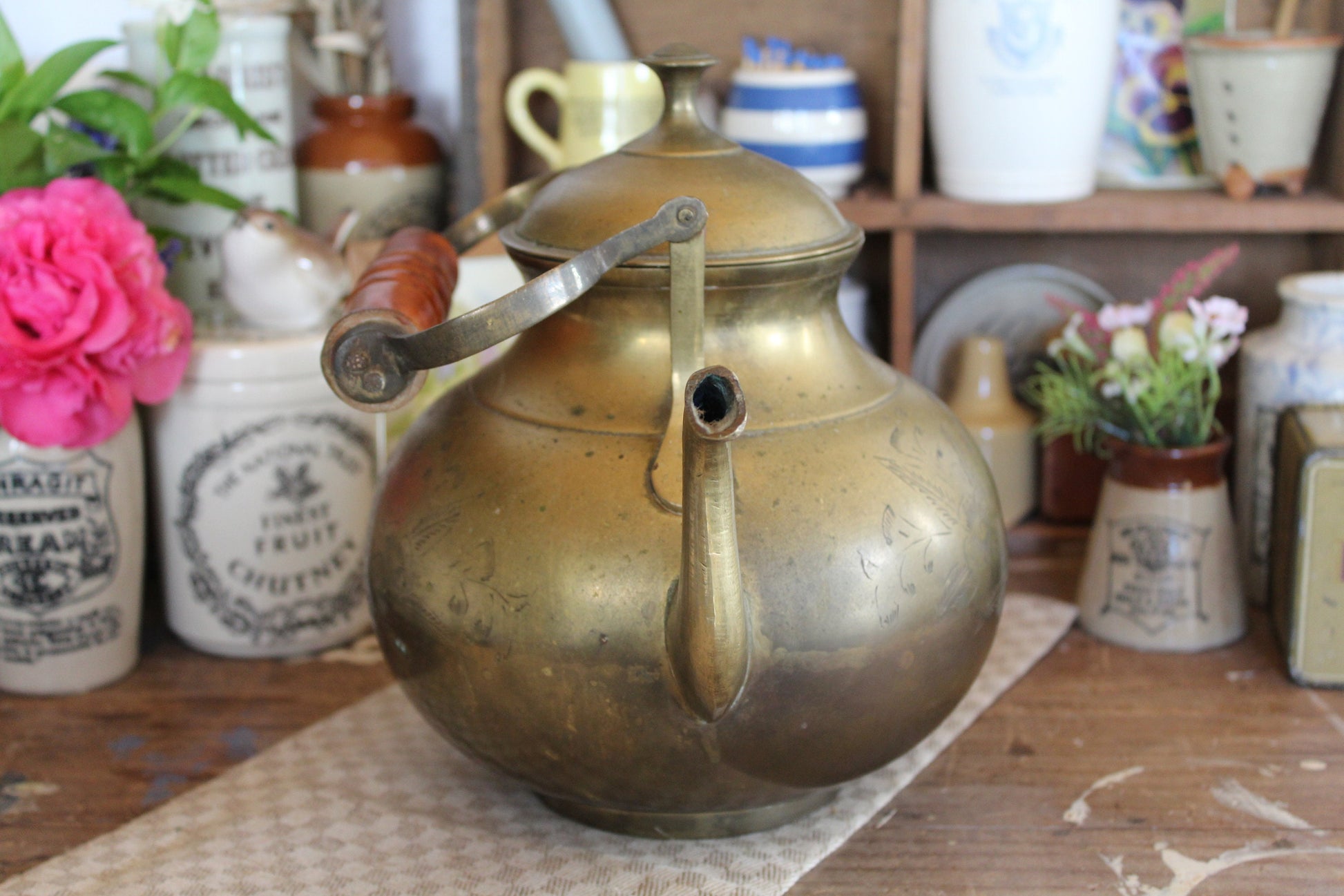 Antique Brass Tea pot, Brass Kettle, Tea Kettle, Antique Teapot, Antique Copper Tea Kettle, Brass stove Kettle, Antique kitchenware, Teapot