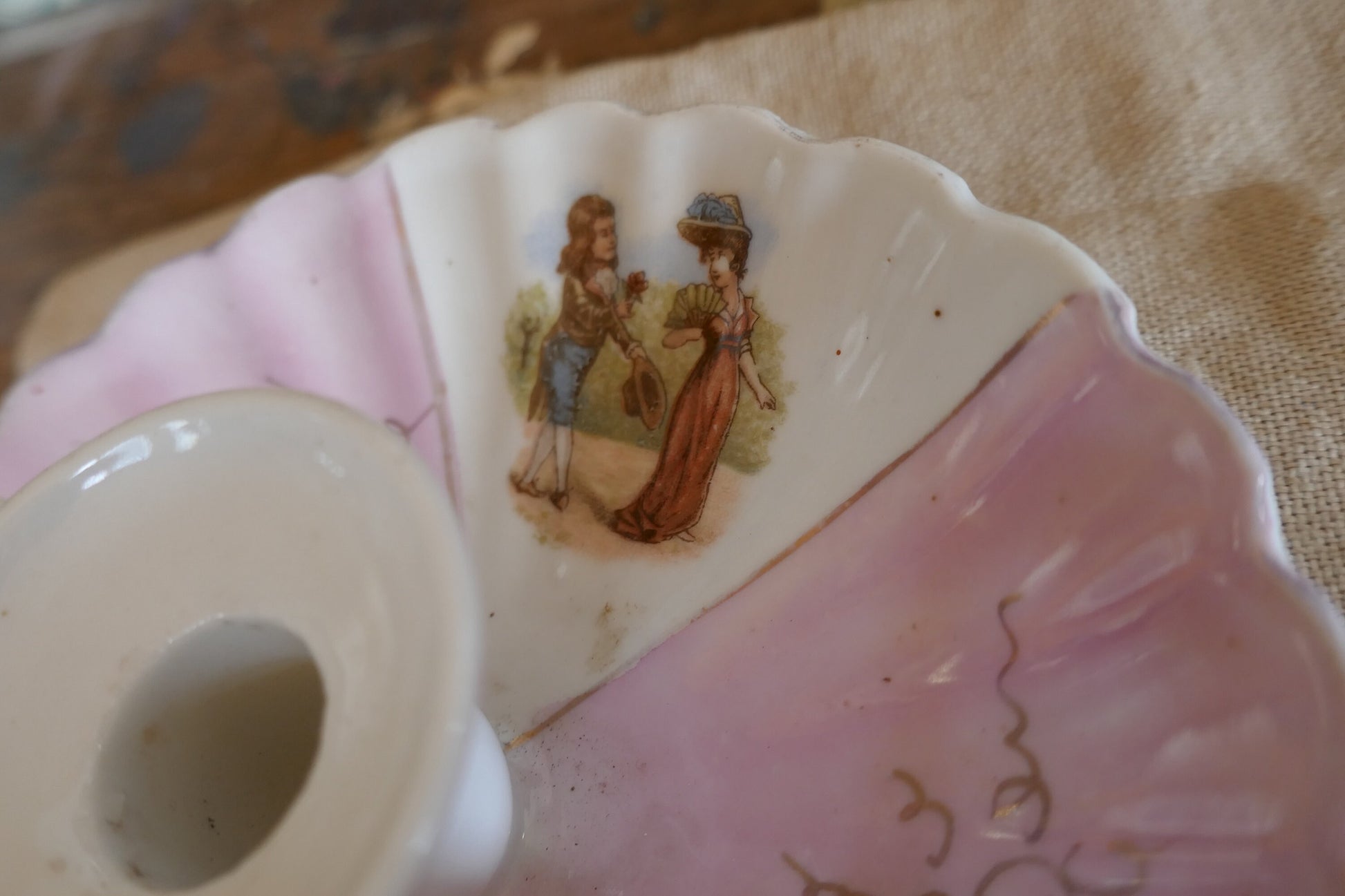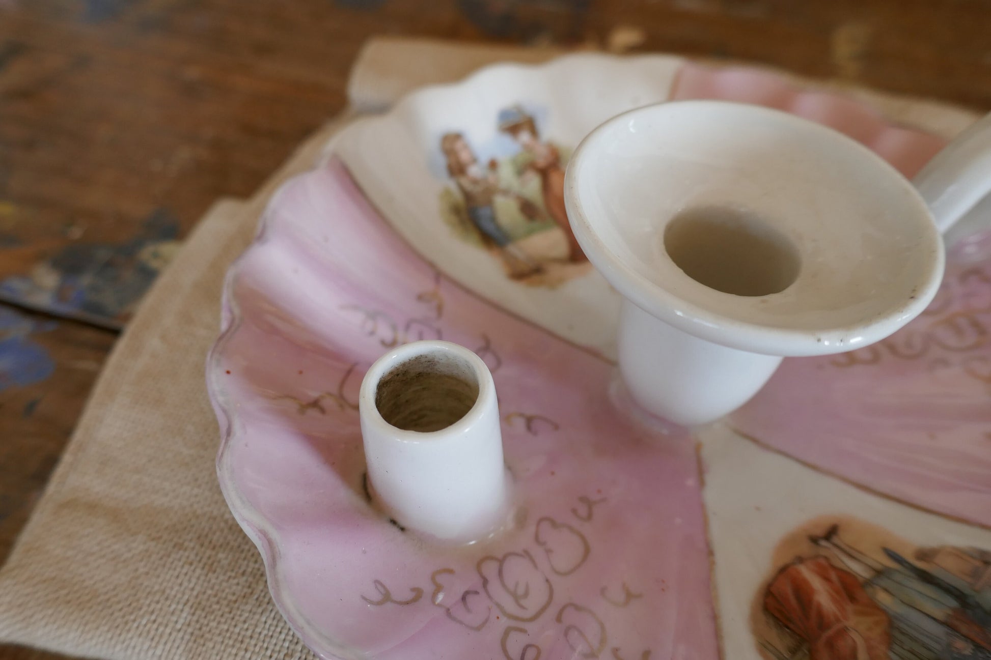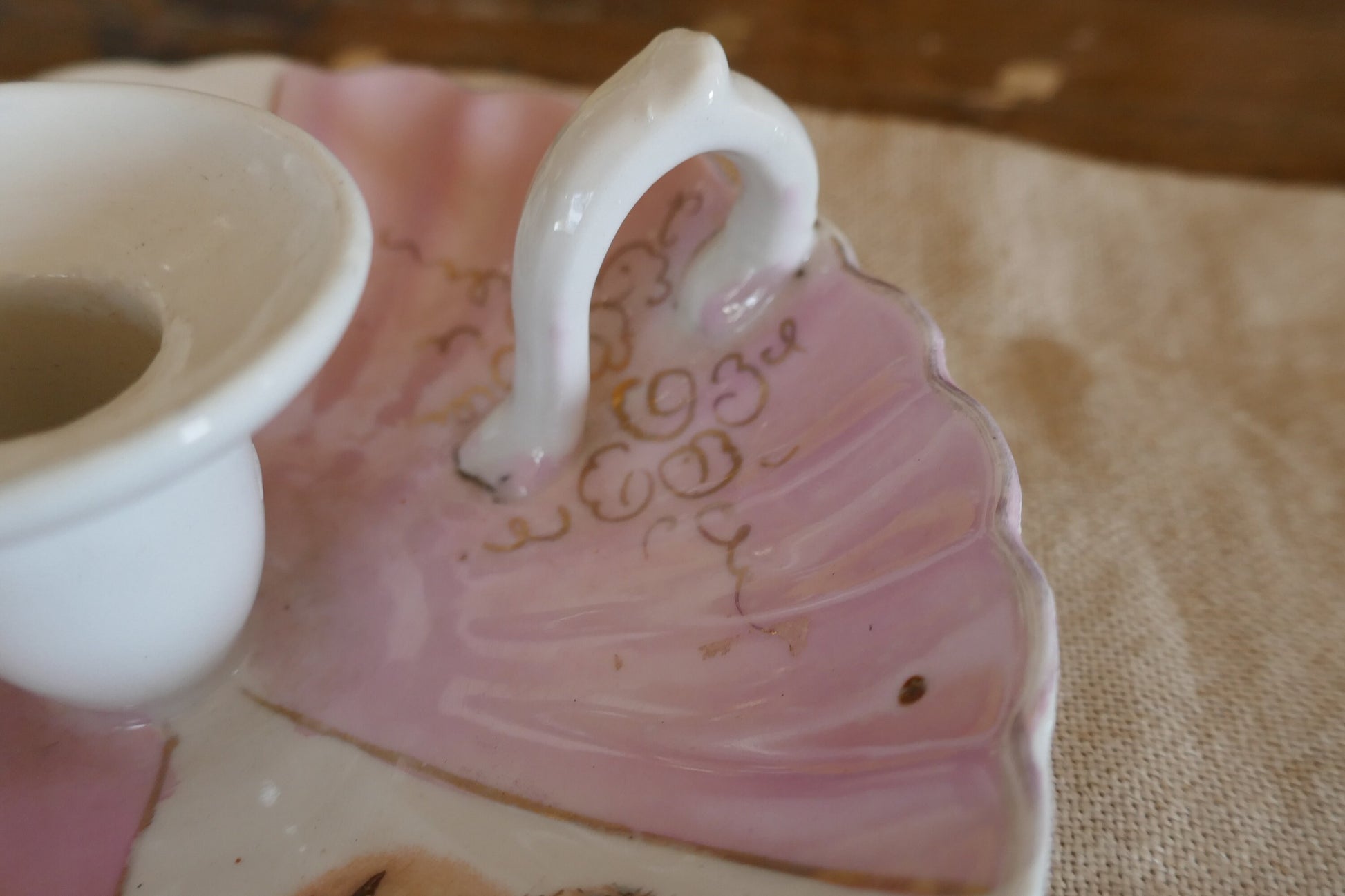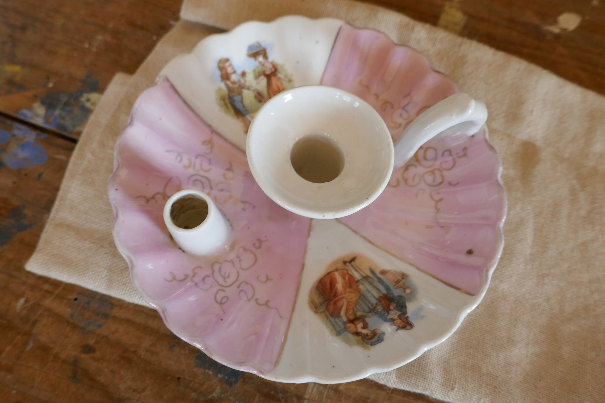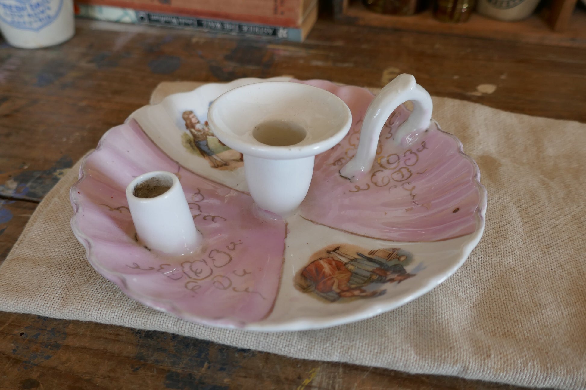 A wonderfully nostalgic antique Victorian/Edwardian era white ceramic chamber stick candle holder.