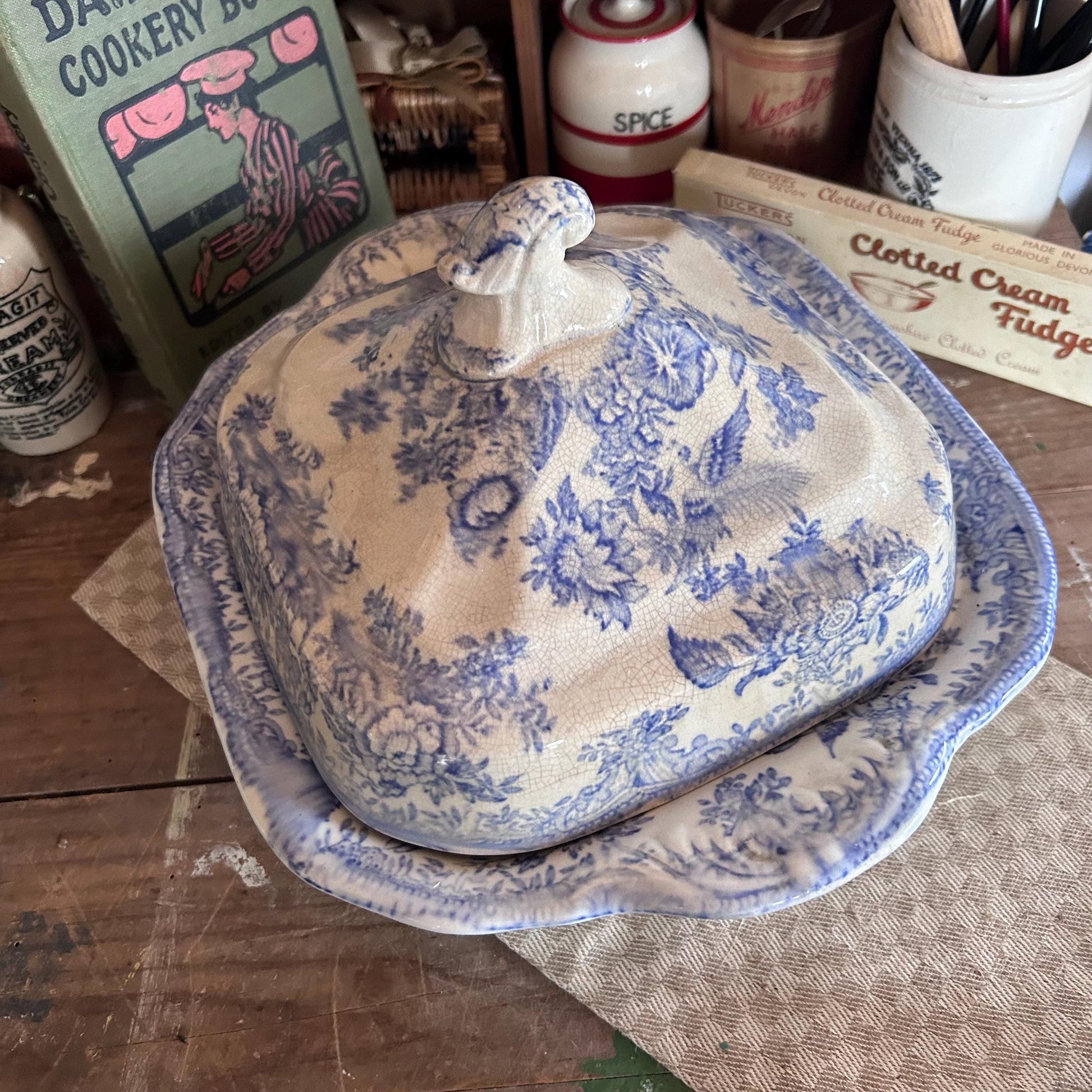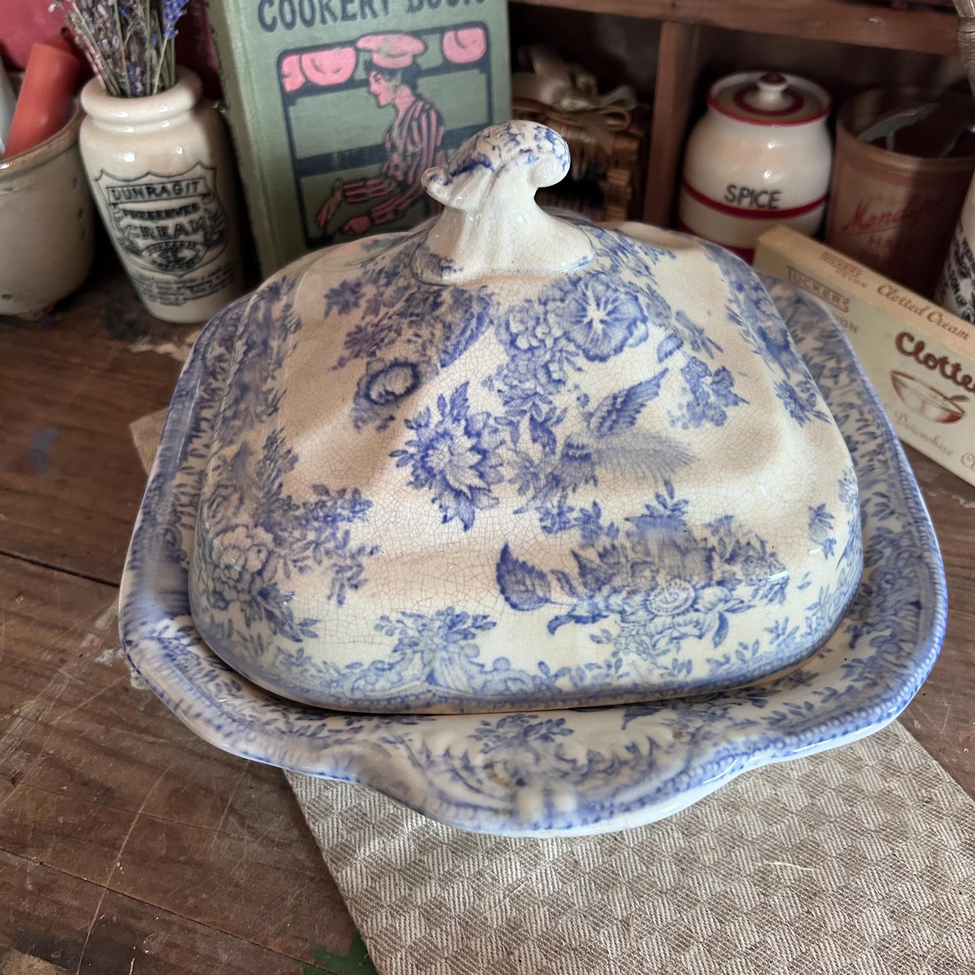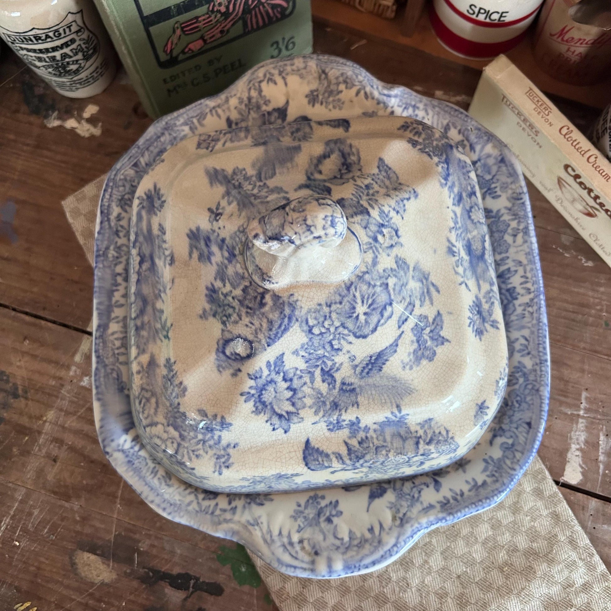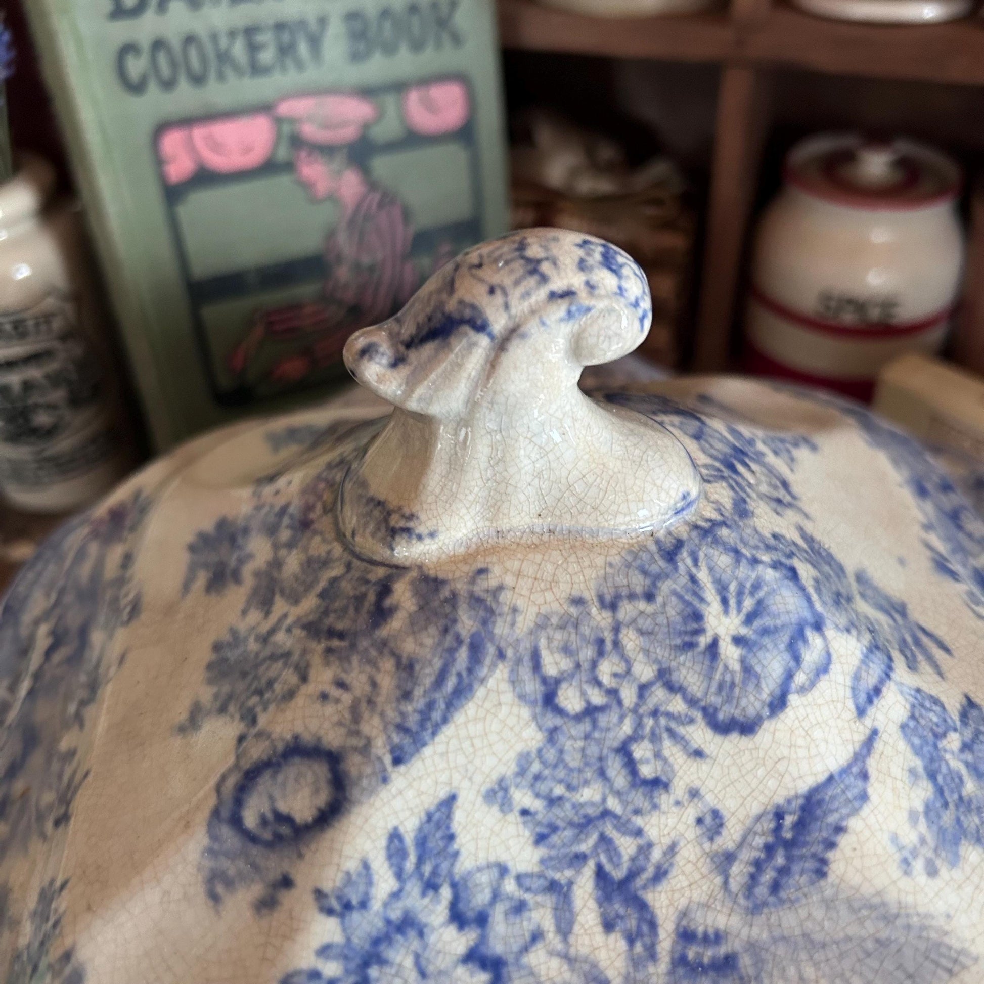 Beautiful antique Adriatic Pheasants ironstone blue and white tureen.