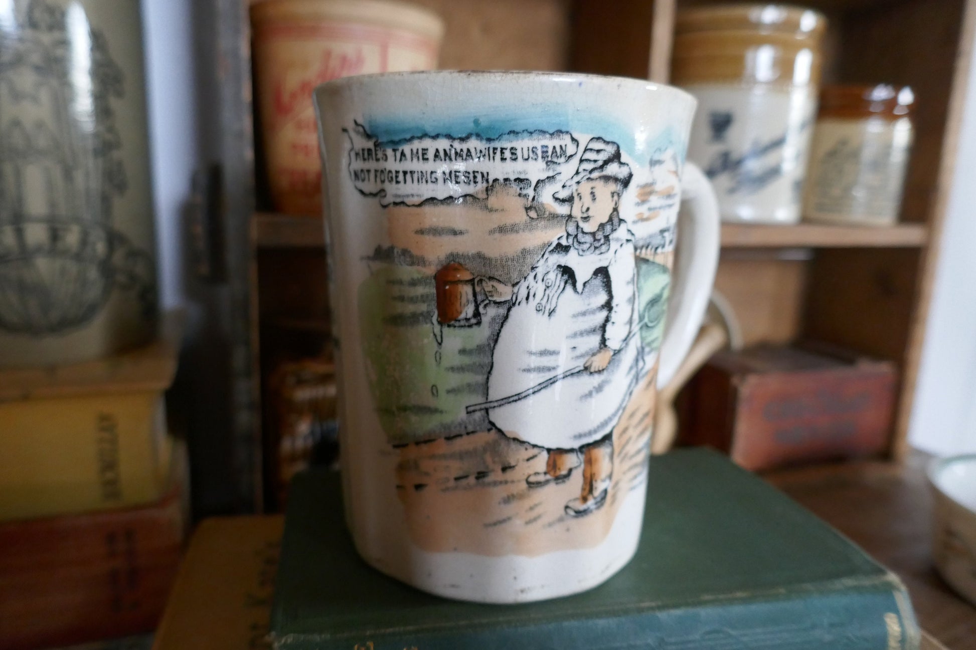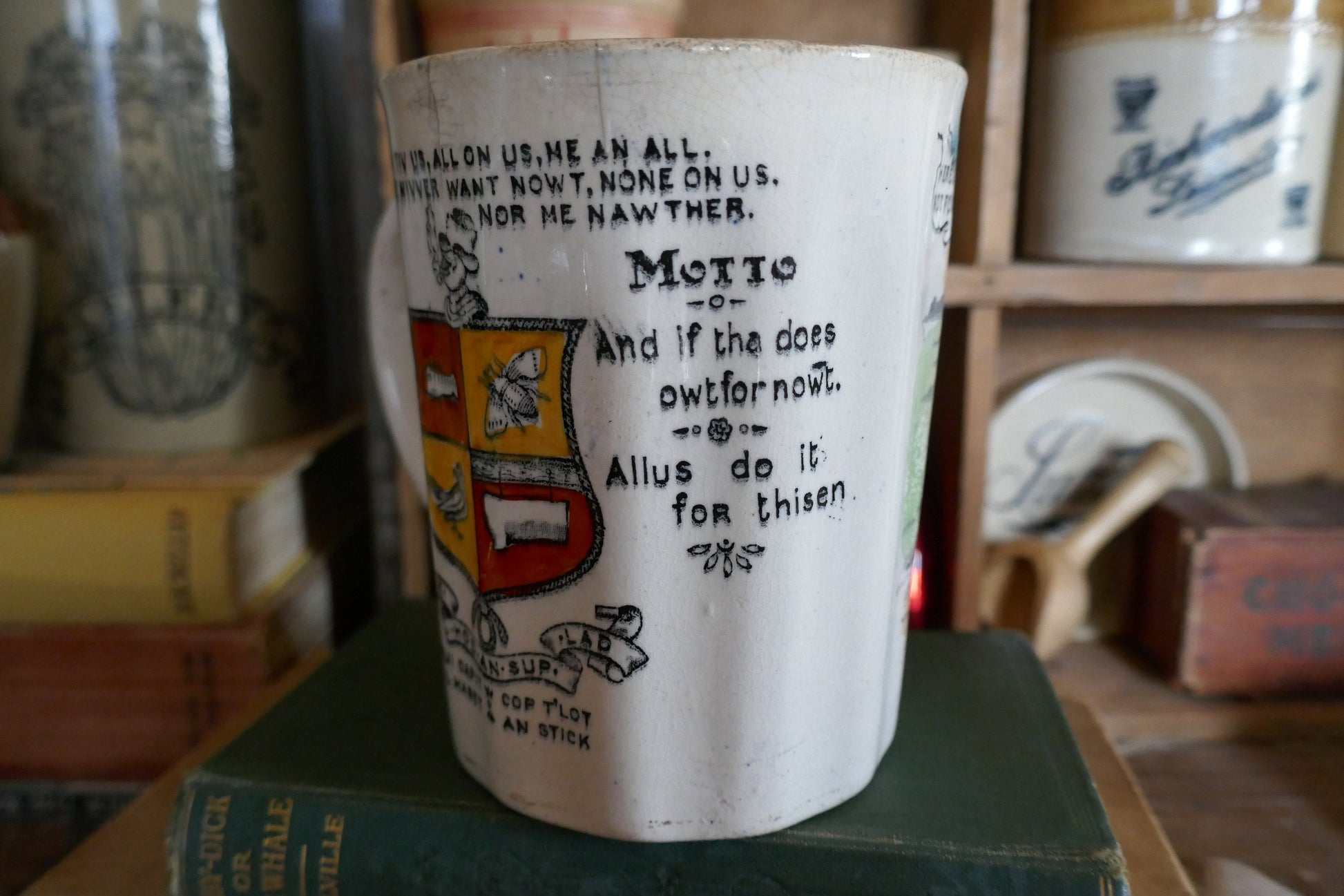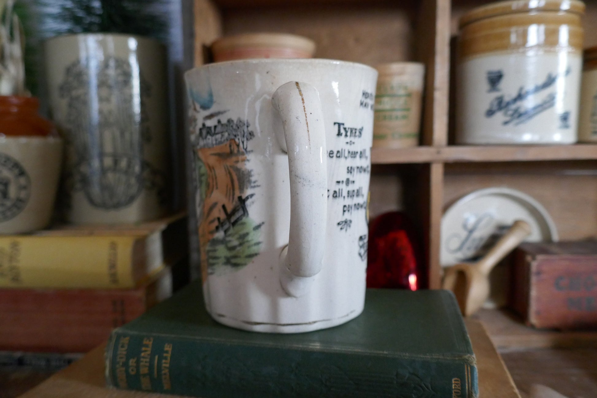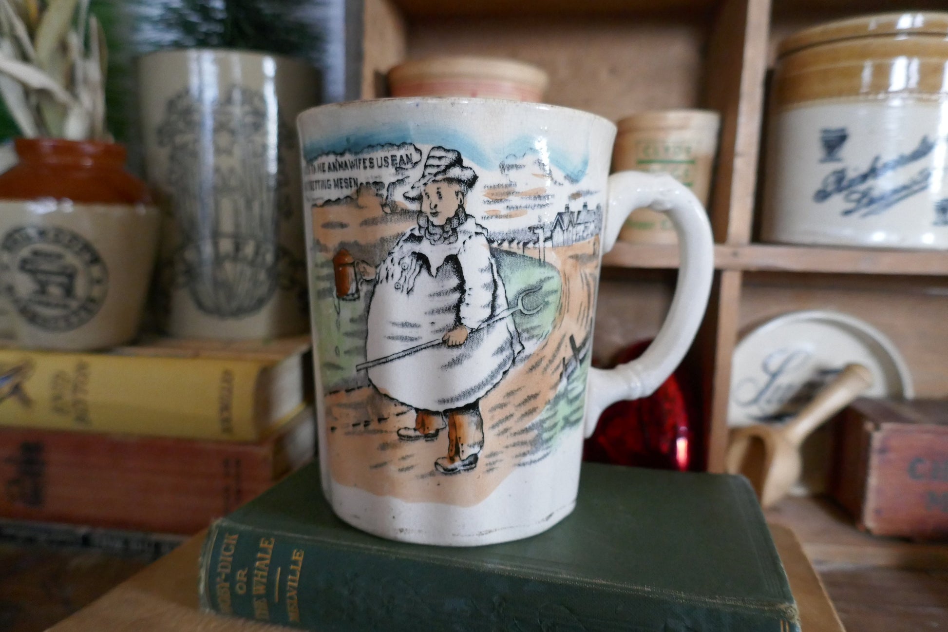 This mug dates to the circa Victorian era and was made as a decorative piece for a farmer.