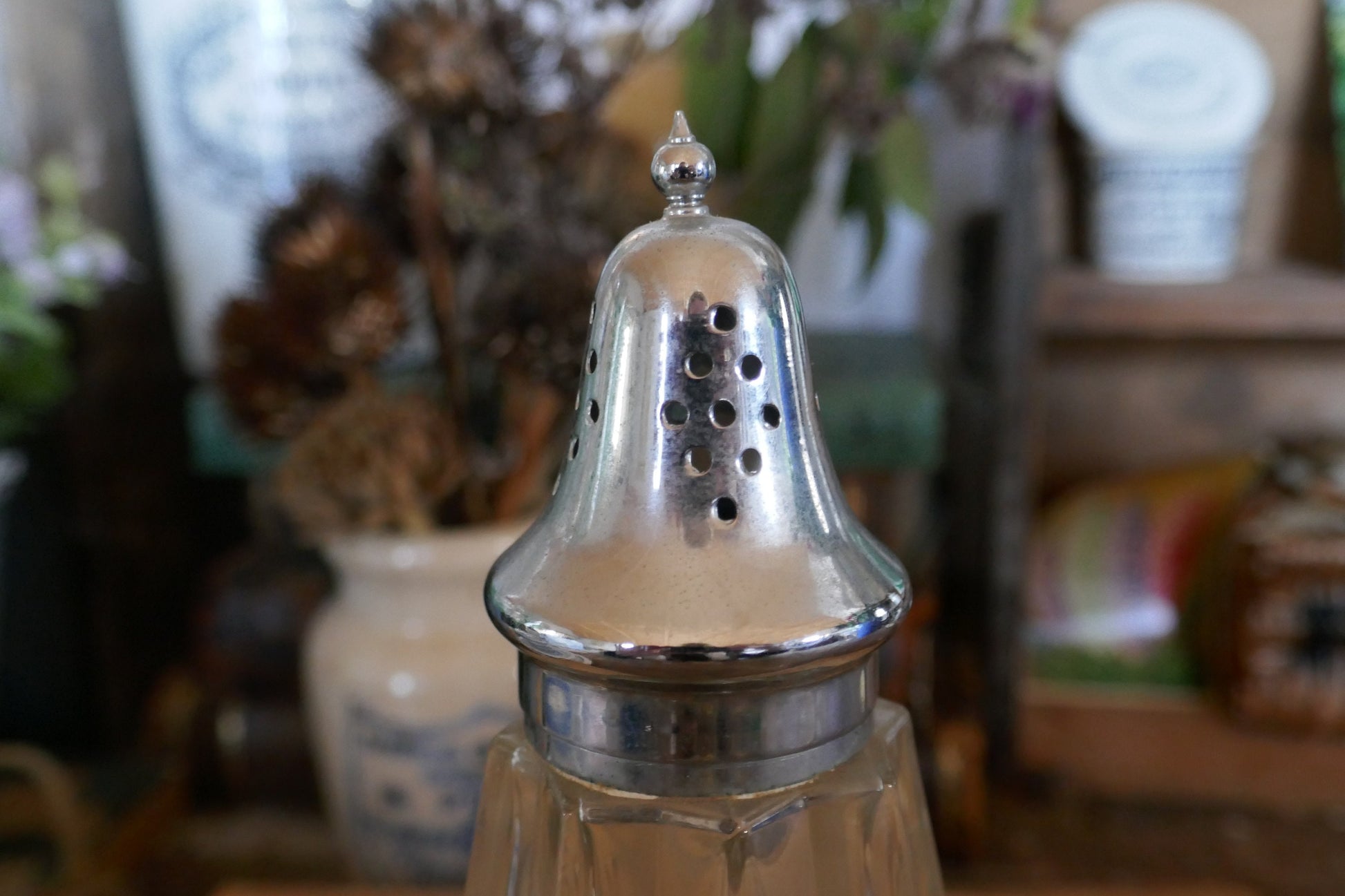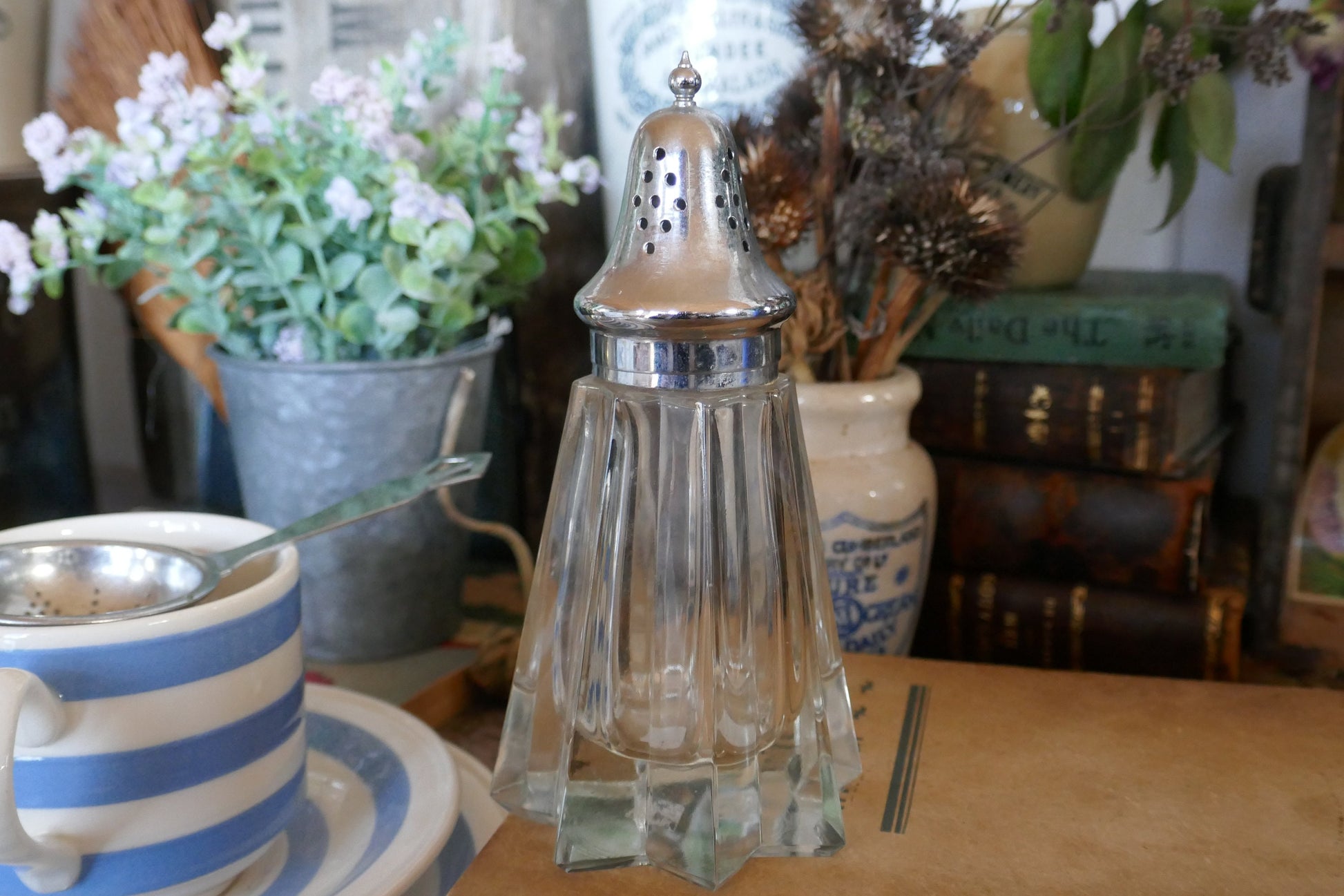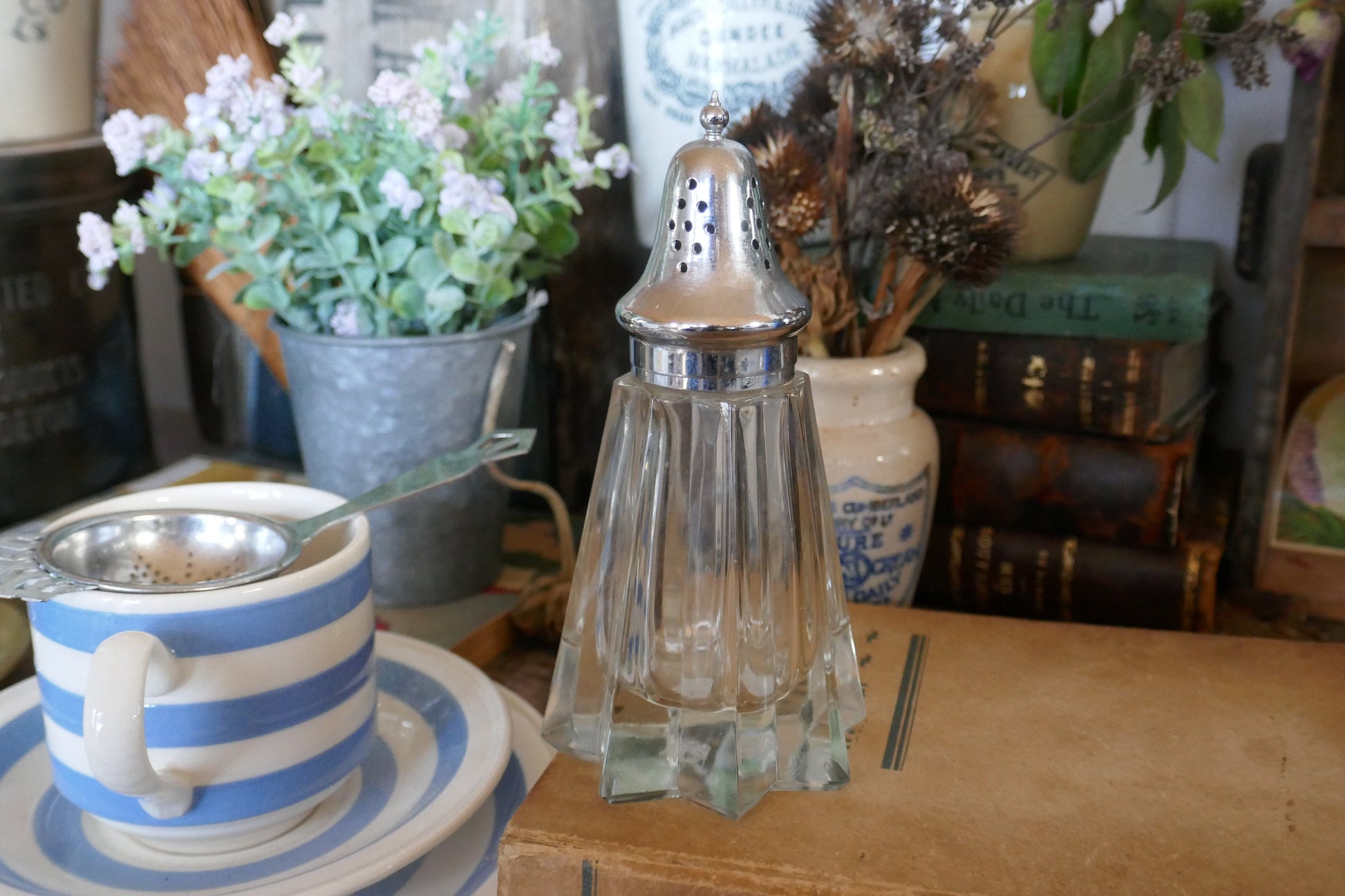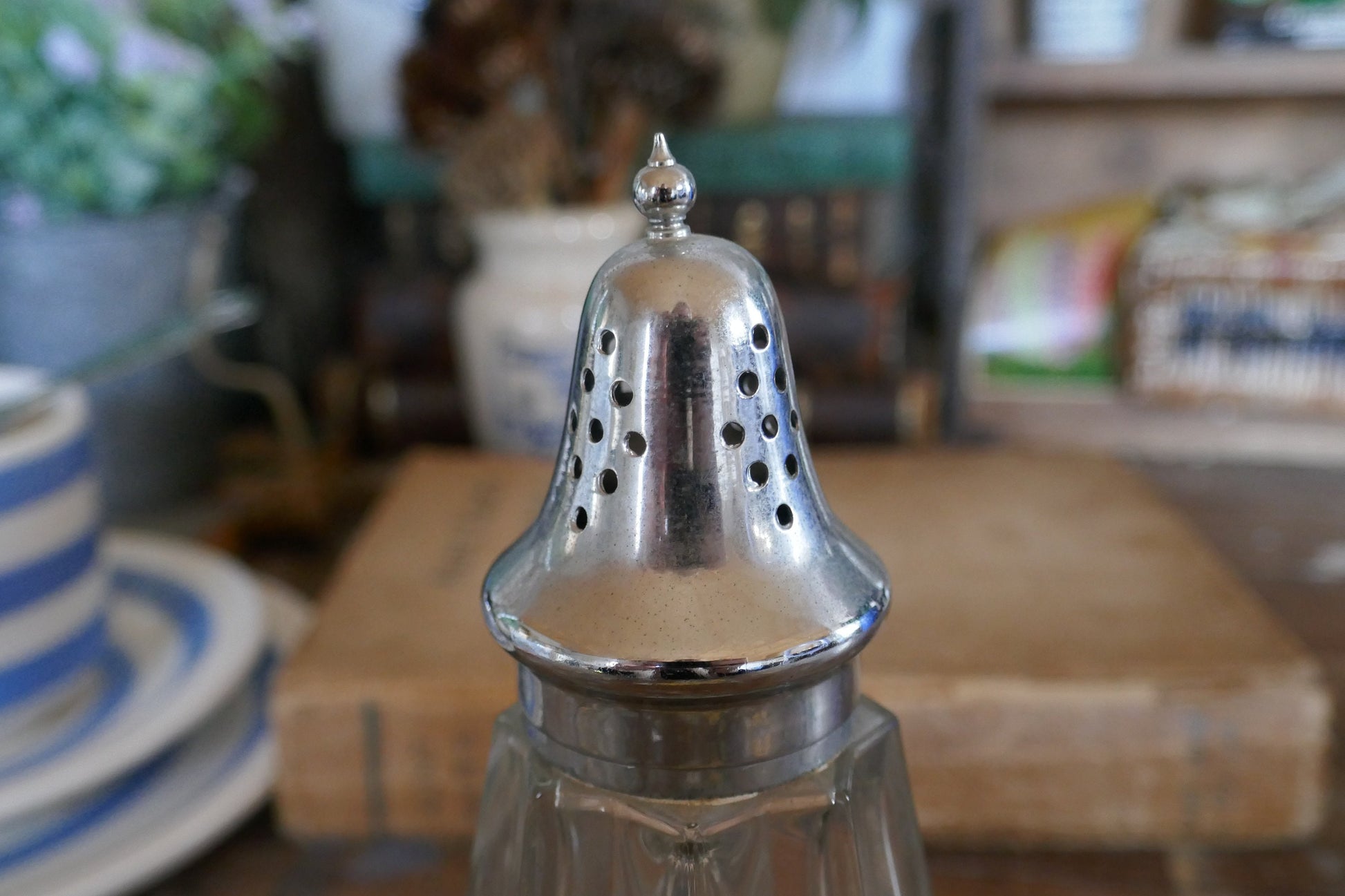Lovely clear pressed glass sugar shaker circa 1930s.