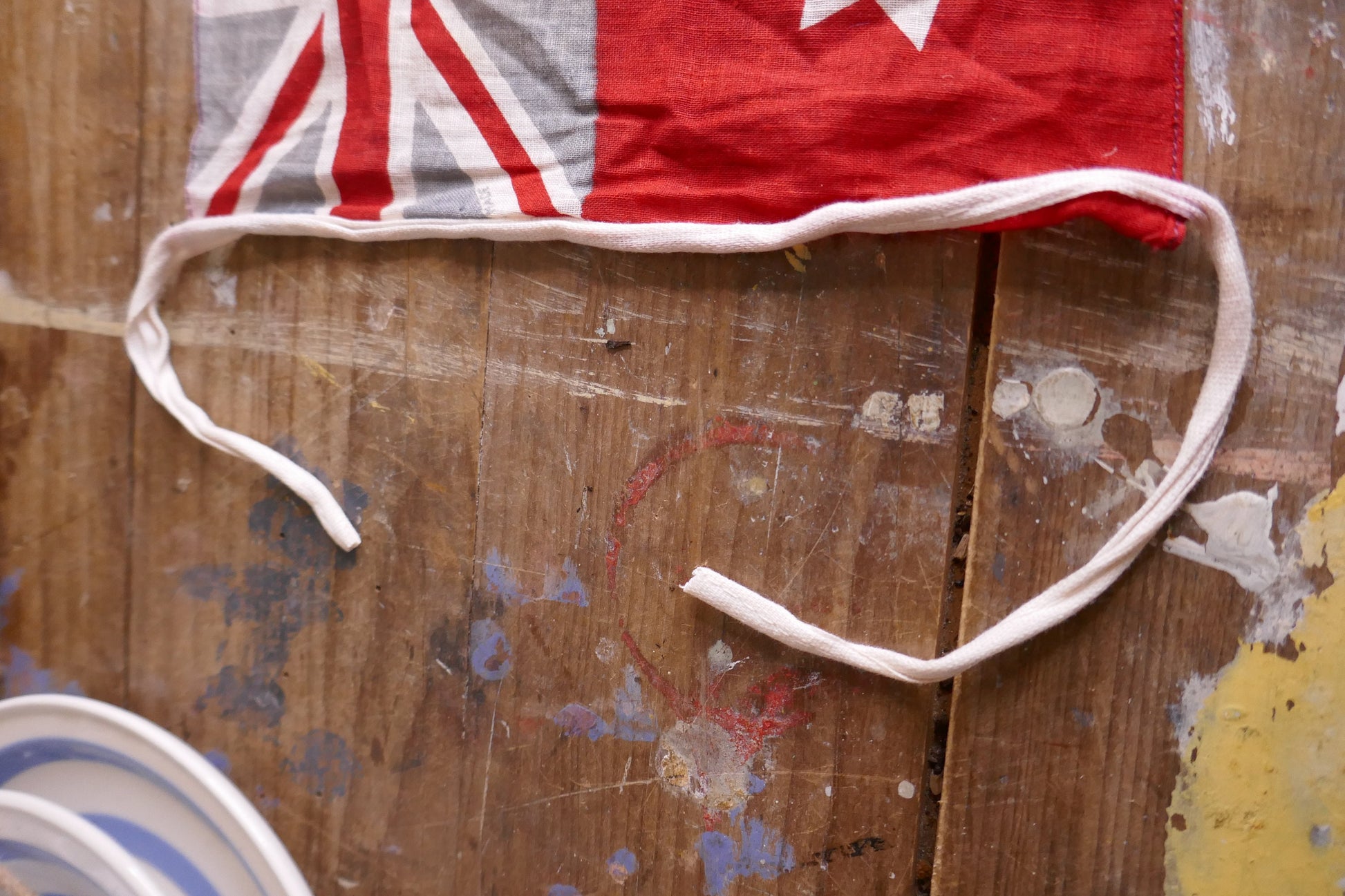 A unusual find in the UK, this flag has a lovely time worn faded patina showing its history. It has no holes or tears just some light some light surface wear and minimal stains. It has 'made in England' printed on to it and it is made of cotton. This only adds to its appeal in our opinion and shows it is not a reproduction.