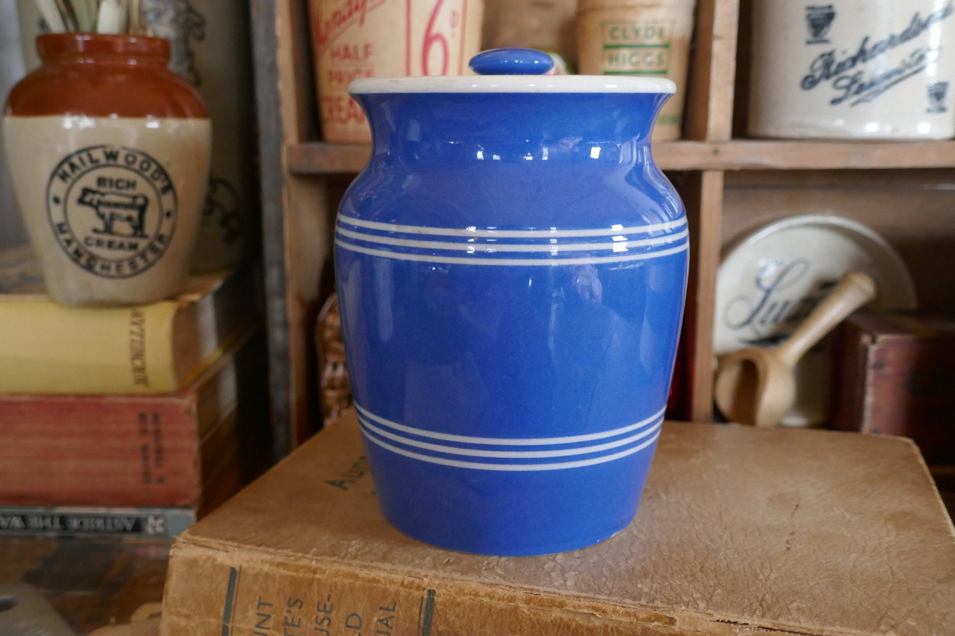 Rare Antique Bretby Kitchen Kupboard Ware Spice Jar - Vintage Kitchen Jar - Blue and White Kitchen Jar - Kitchen Canister - Antique Jar