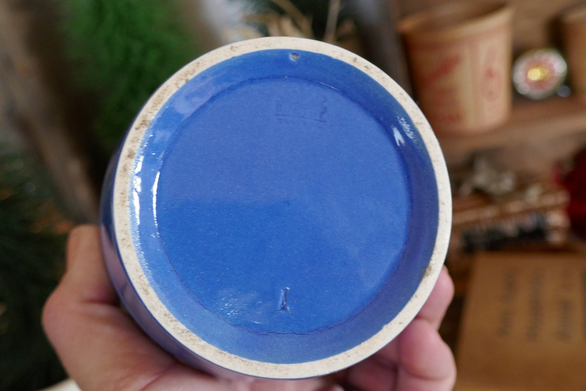 This was a very stylish modern kitchen ware of the time and has stood the test of time in its classic blue and white glaze.