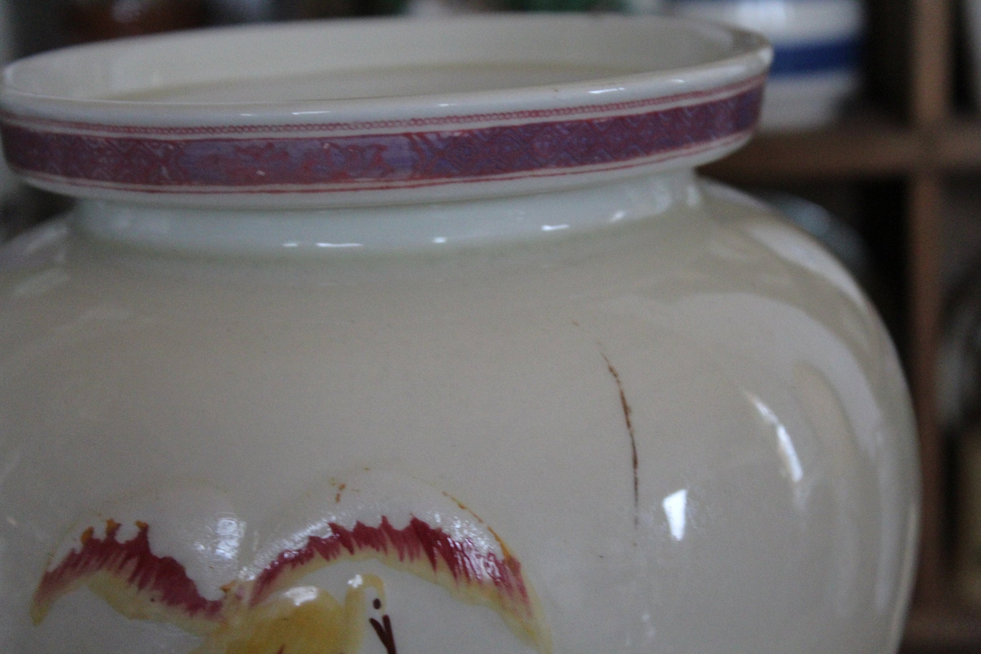 Very good condition, no chips or cracks, some light crazing, some paint loss to the hand painted lettering but nothing too bad, great condition for age.