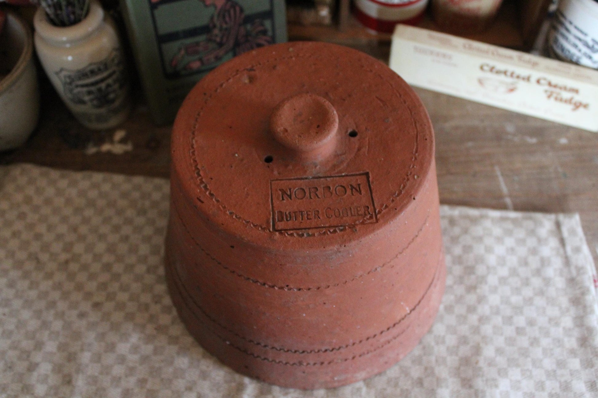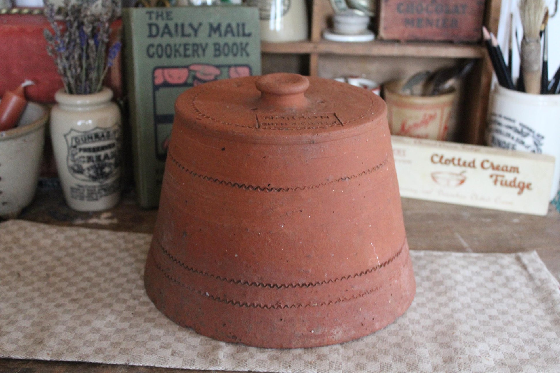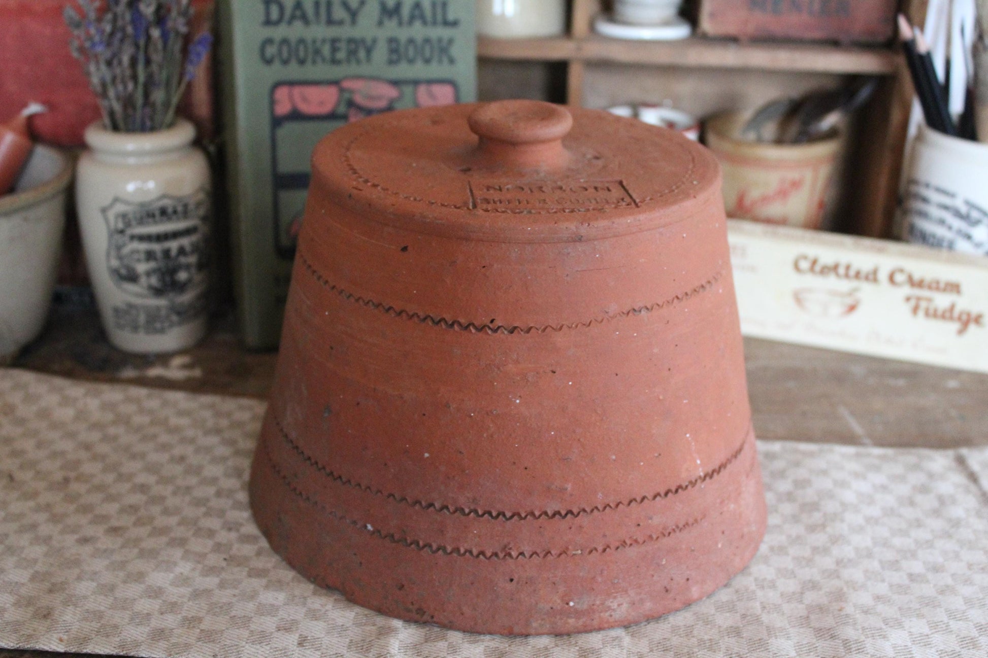 This is a rare early example and has the original advertising to the top of the cloche. No chips or cracks. As this is made of terracotta they are easily broken which is why they are a rarer find today.