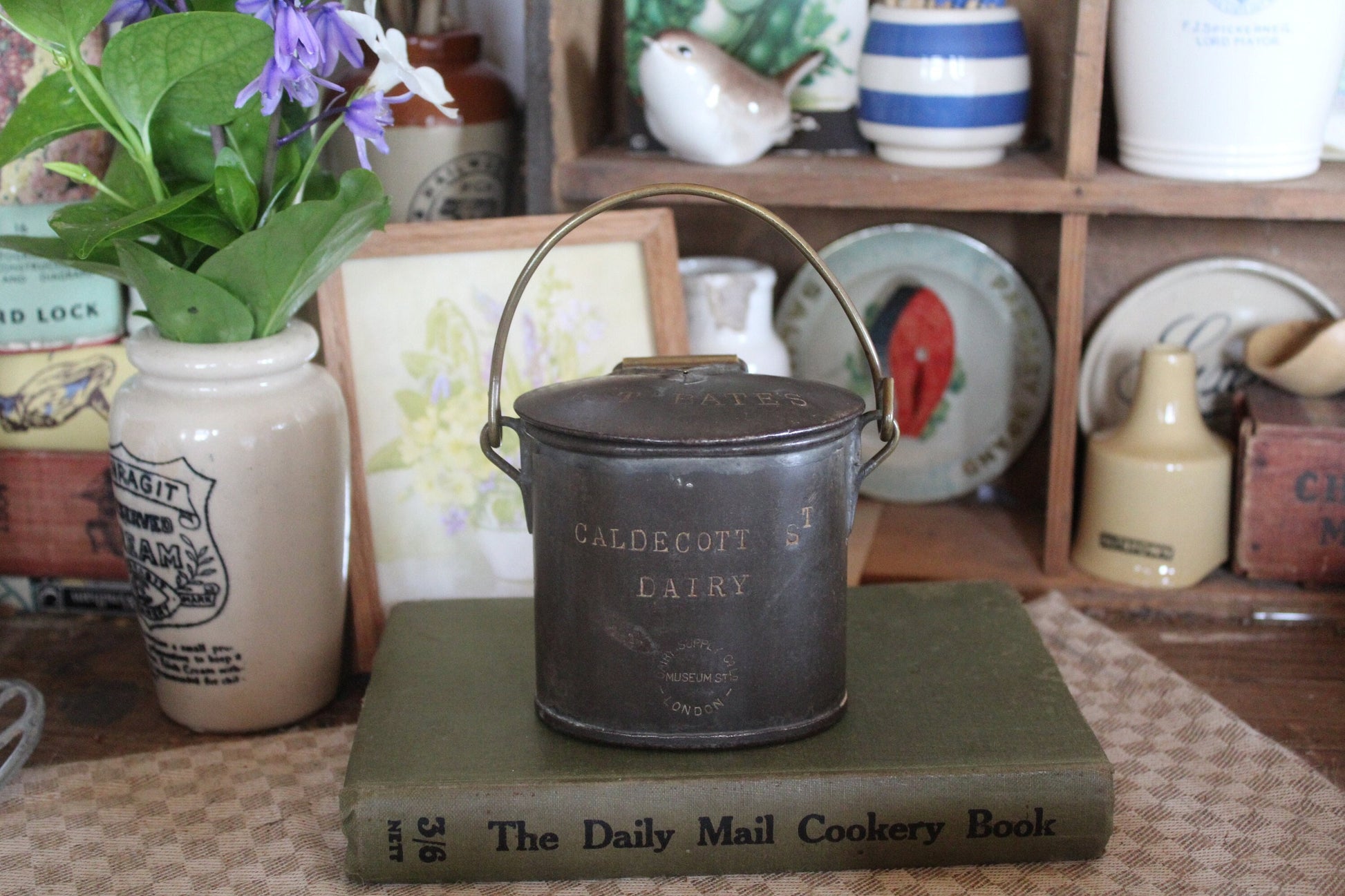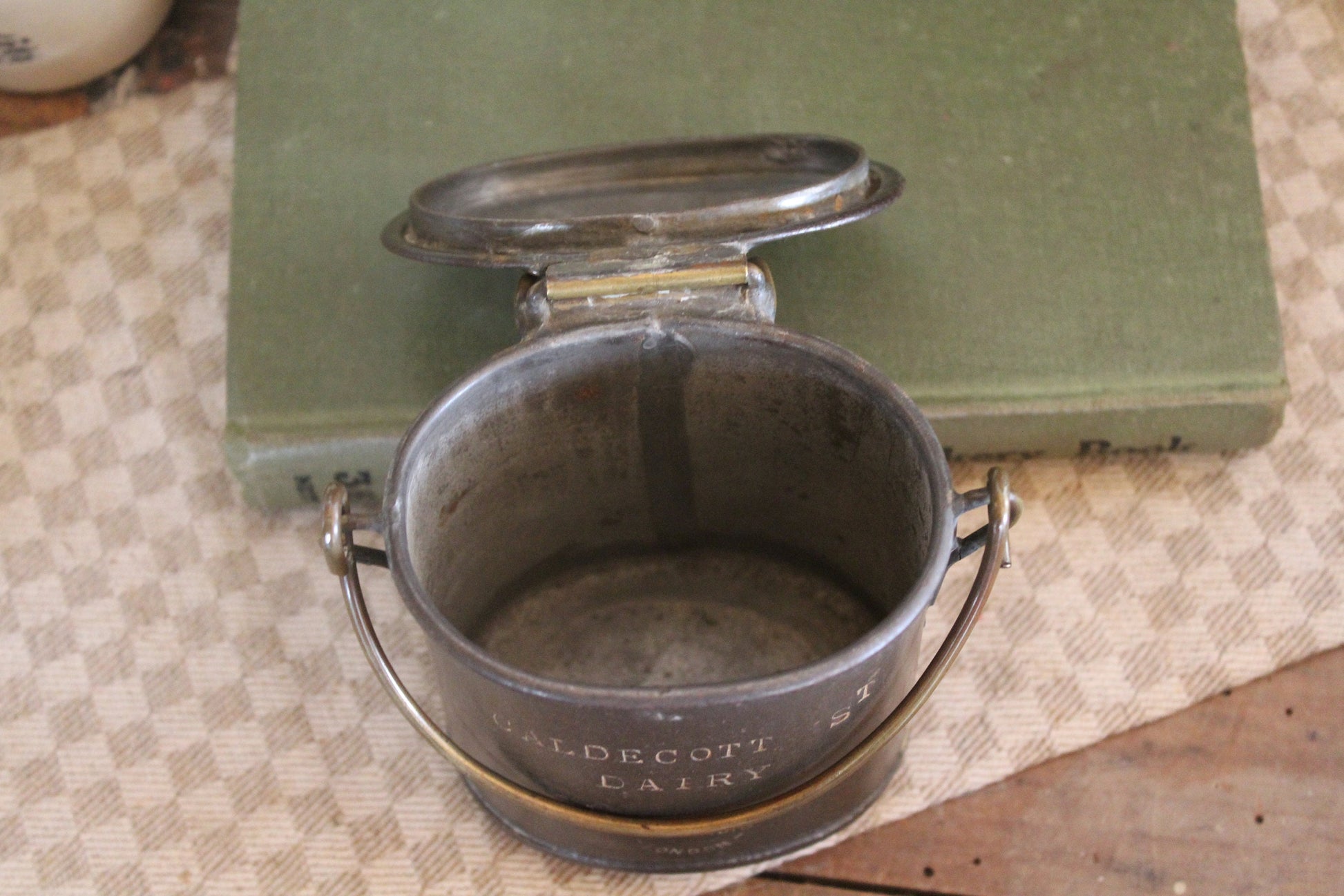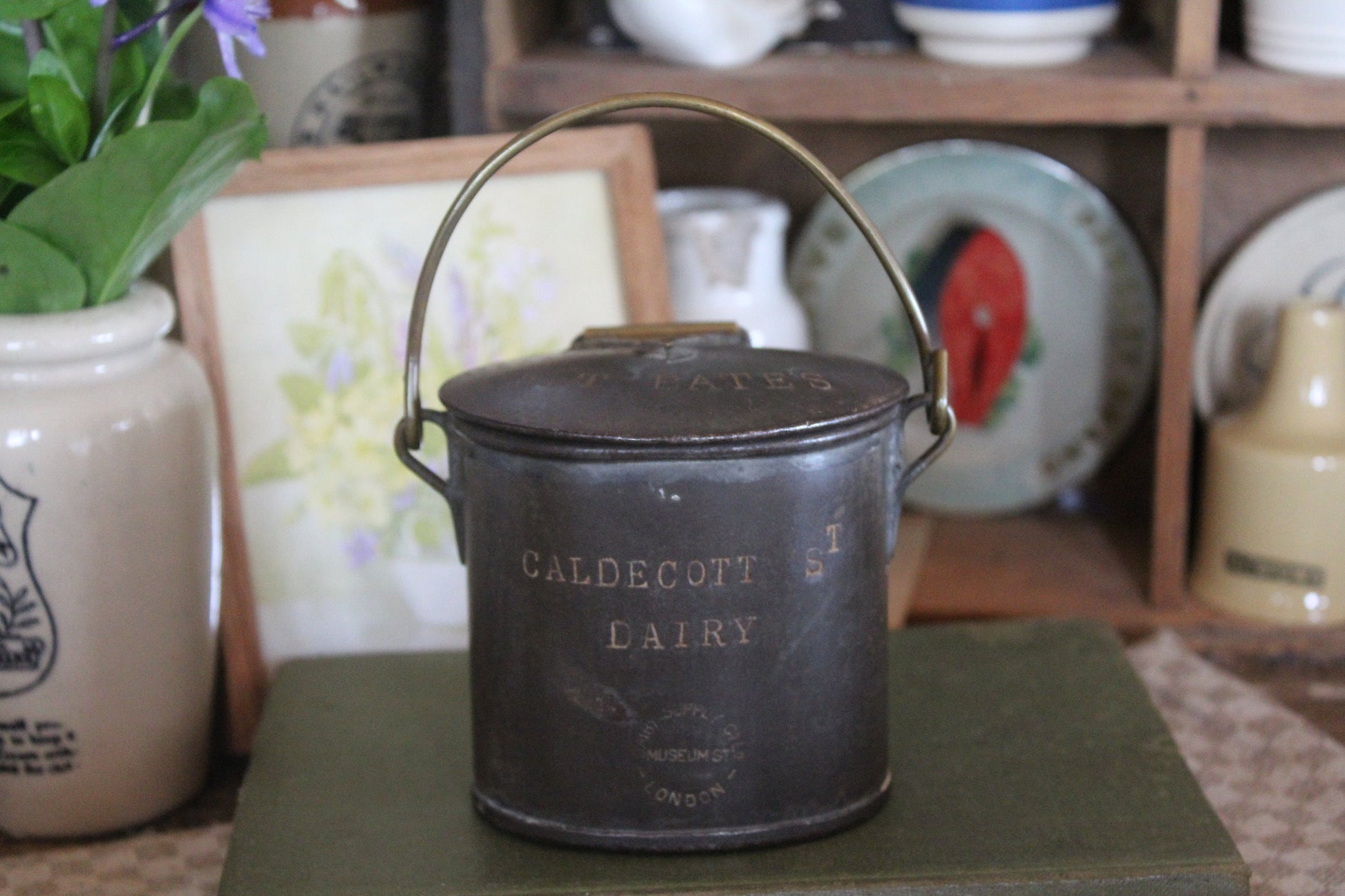 RARE Edwardian Dairy Pot, Antique Advertising Tin, Antique Dairy Tin, Dairy Cream Pot, Antique Advertising Pot, Caldecott Dairy Pot
