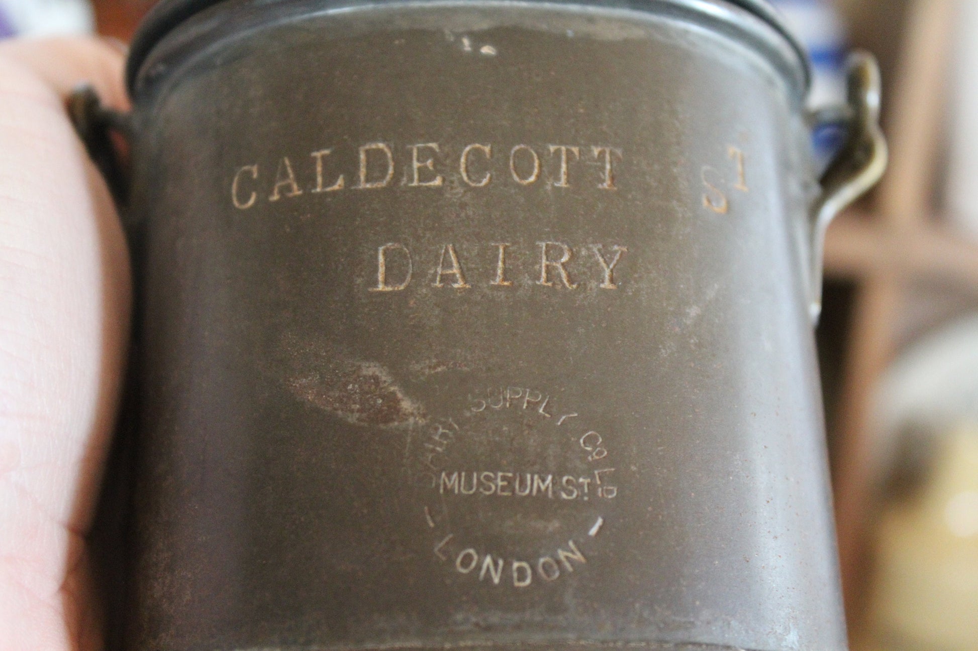 Made in London by the Dairy supply company this little tin cream pot would have originally been filled with cream.