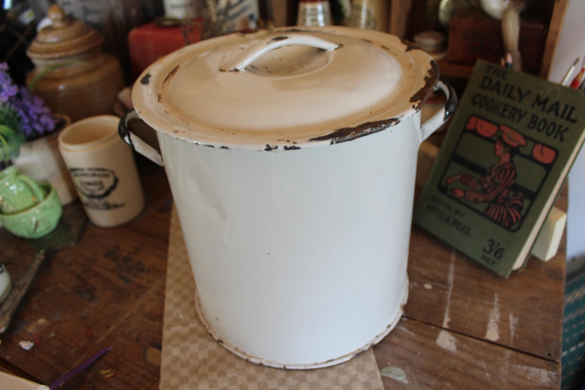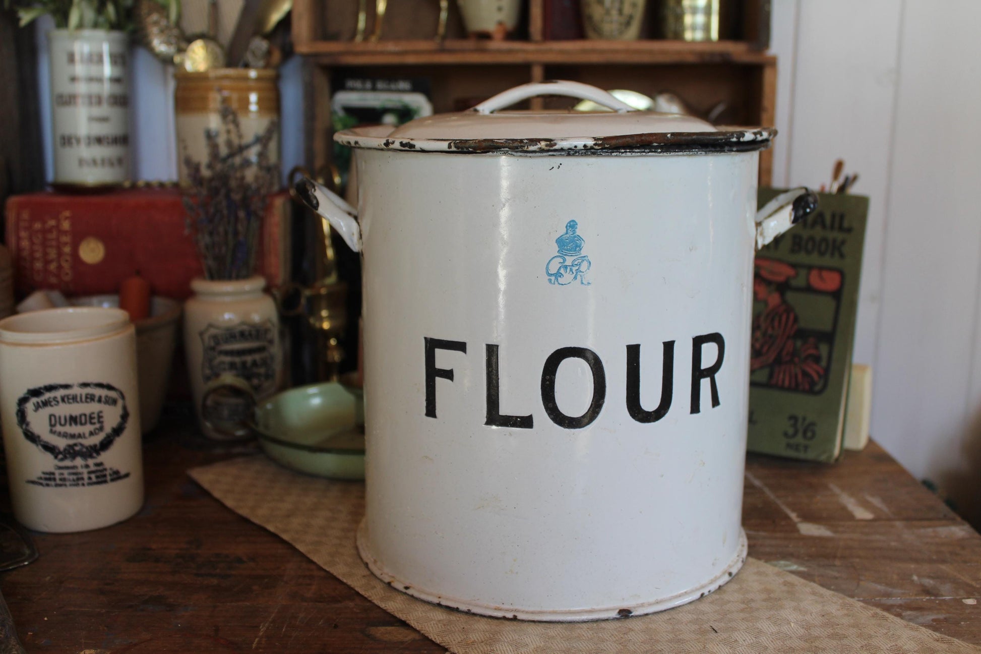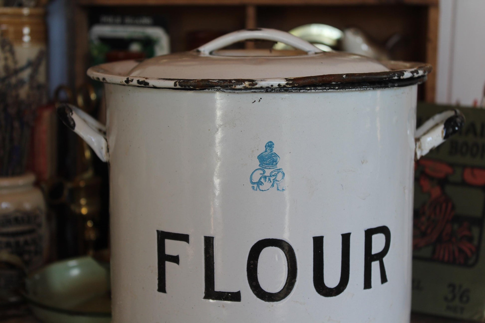 Rare King George Vintage Enamel Flour Bin, Vintage Flour Bin, Flour Store, White Enamel Flour Bin, Vintage Flour Canister, English Flour Bin