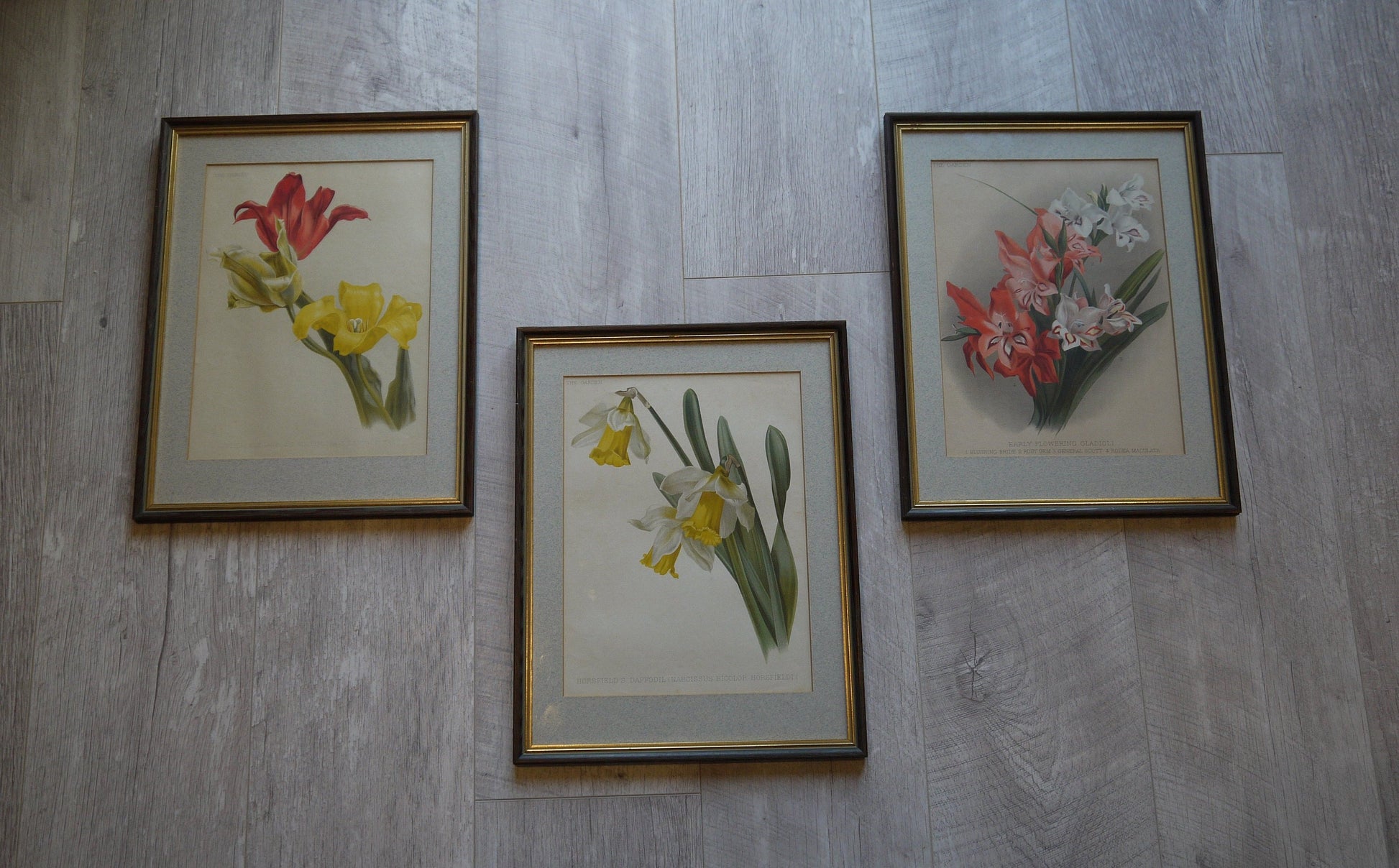 This set of three prints are plates date to the victorian era, they are so beautifully coloured, it is hard to show their beauty online, the colours are bright and the detailing is great! The frames are later and probably date to the the 1960/70s but let the prints stand out, the prints are the star of the show!