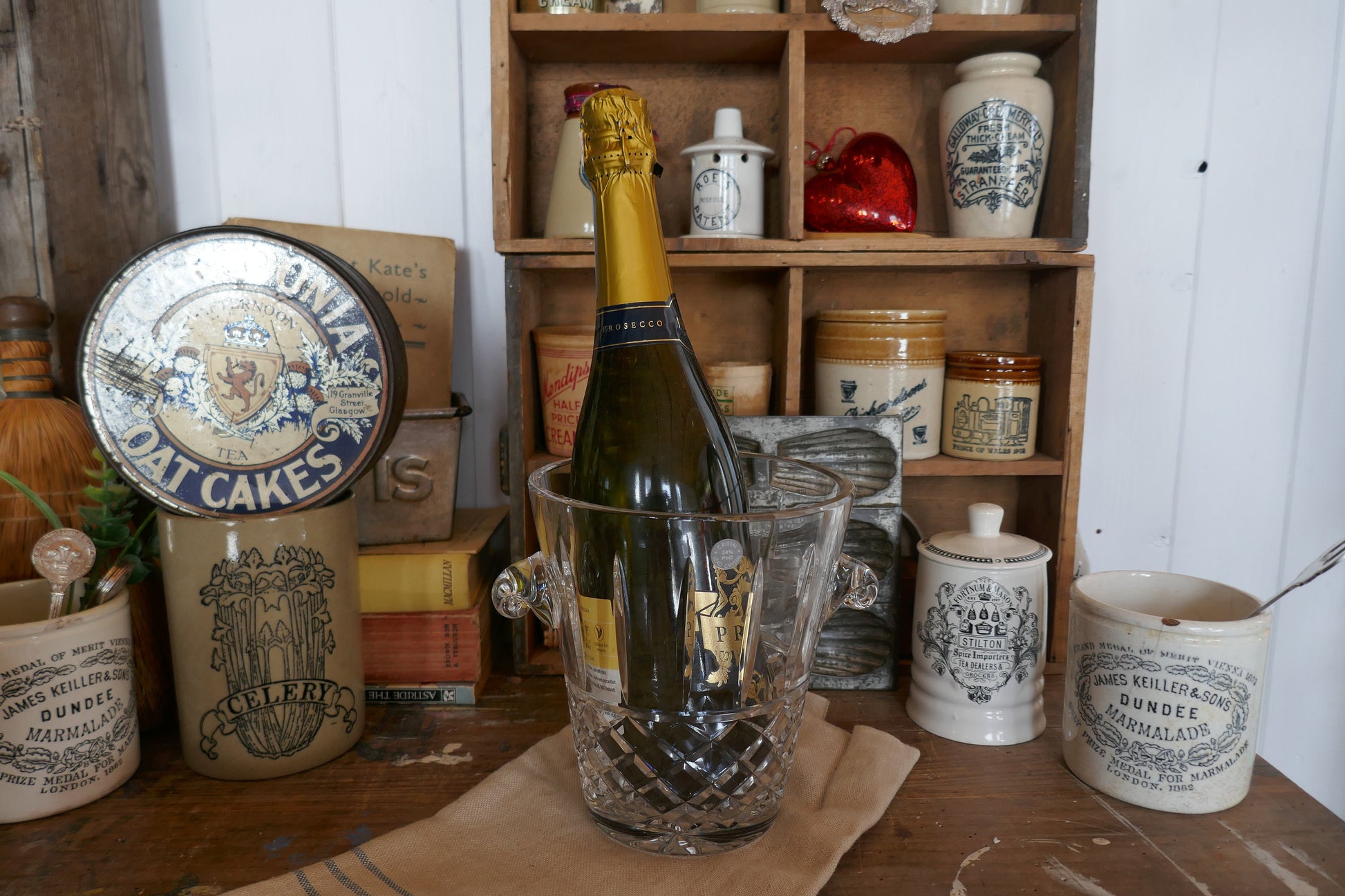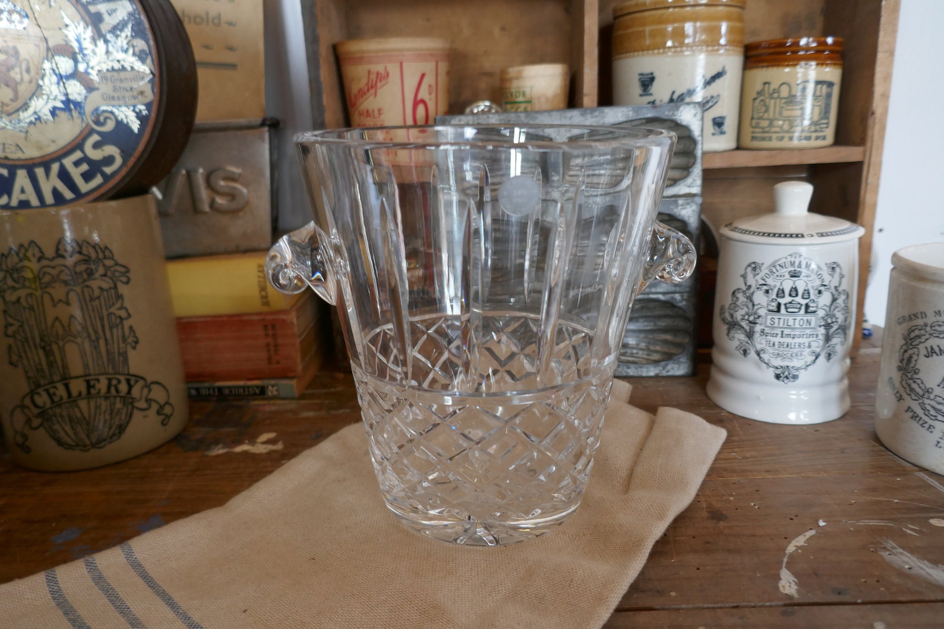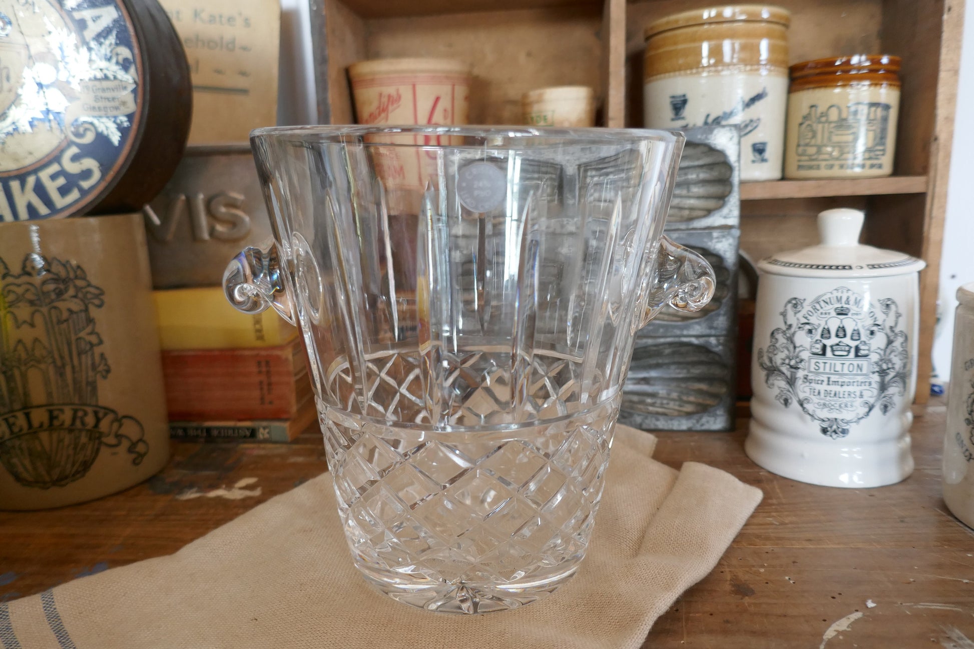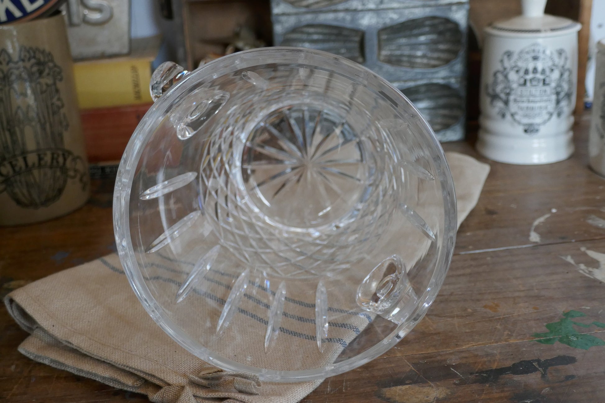 Lovely heavy cut glass crystal vintage glass ice bucket perfect for Champagne or as a wine cooler or ice bucket.