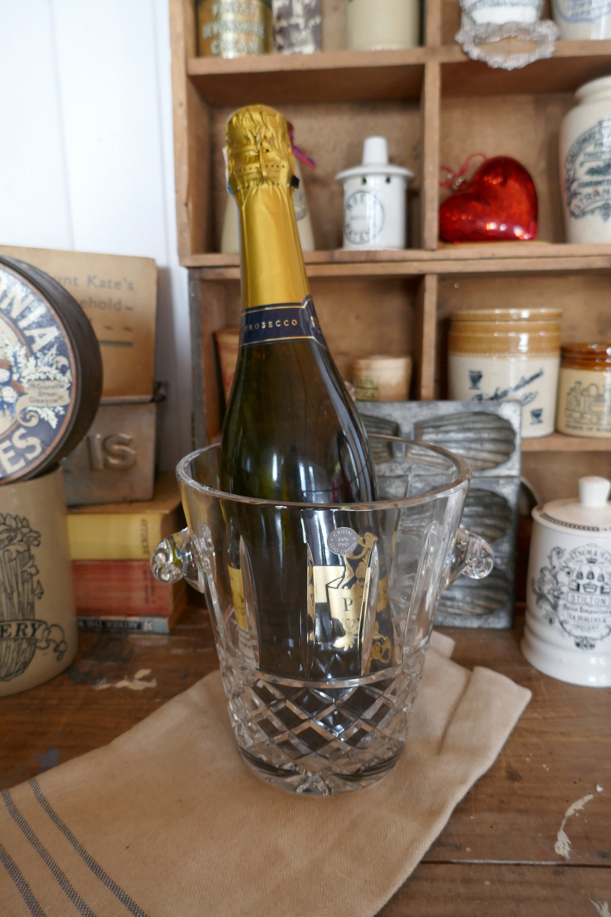 Vintage Crystal Glass Champagne Bucket - Cut Glass Ice Bucket - Glass Wine Cooler - Glass Champagne Bucket - Crystal Ice Bucket - Cut Glass