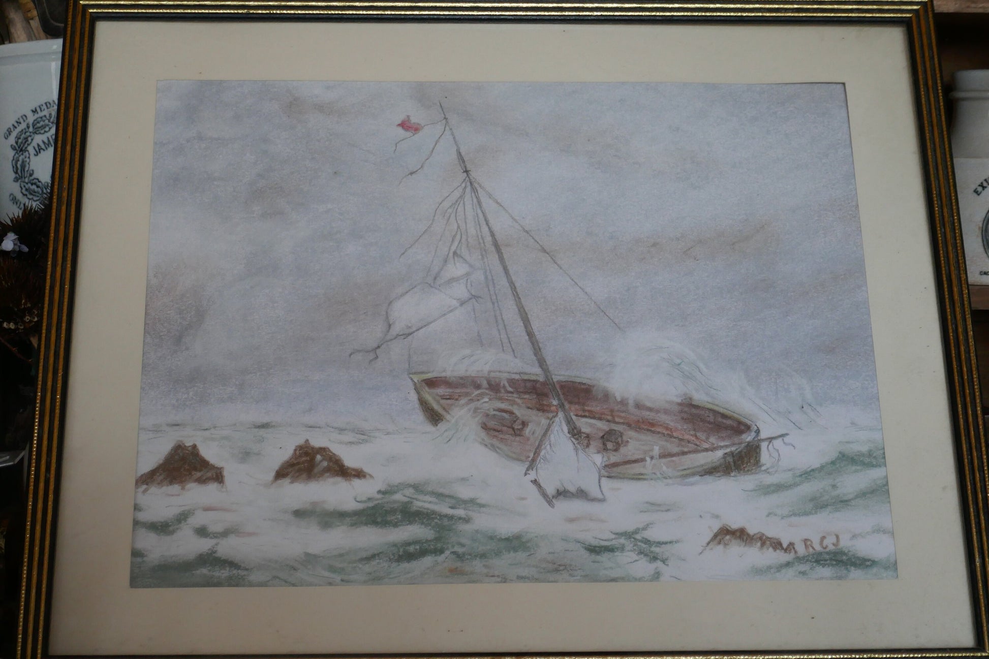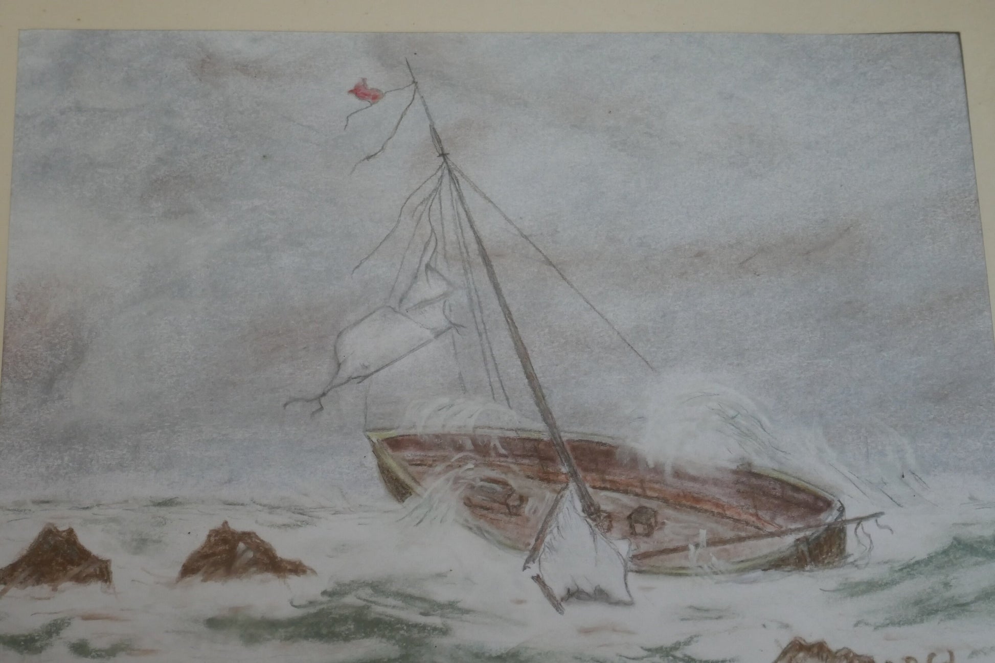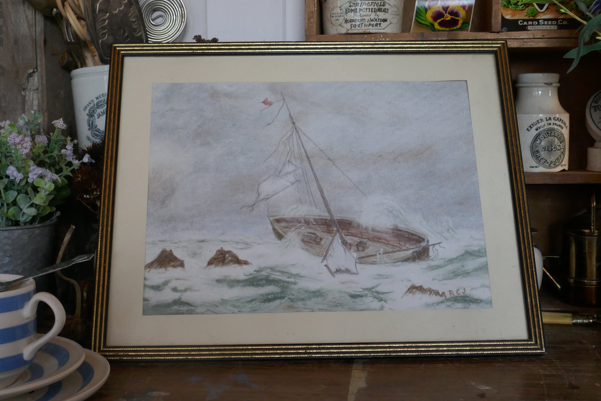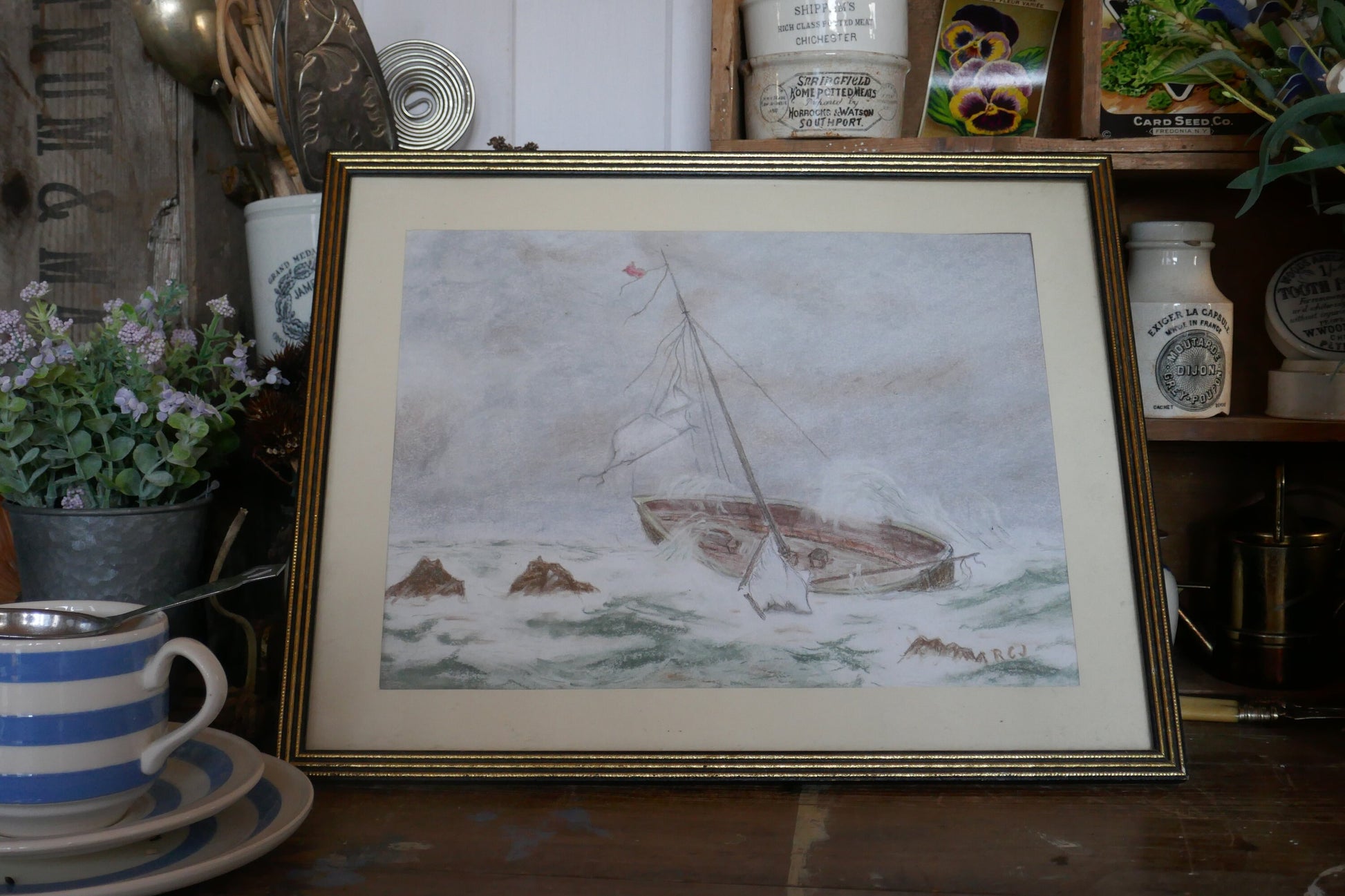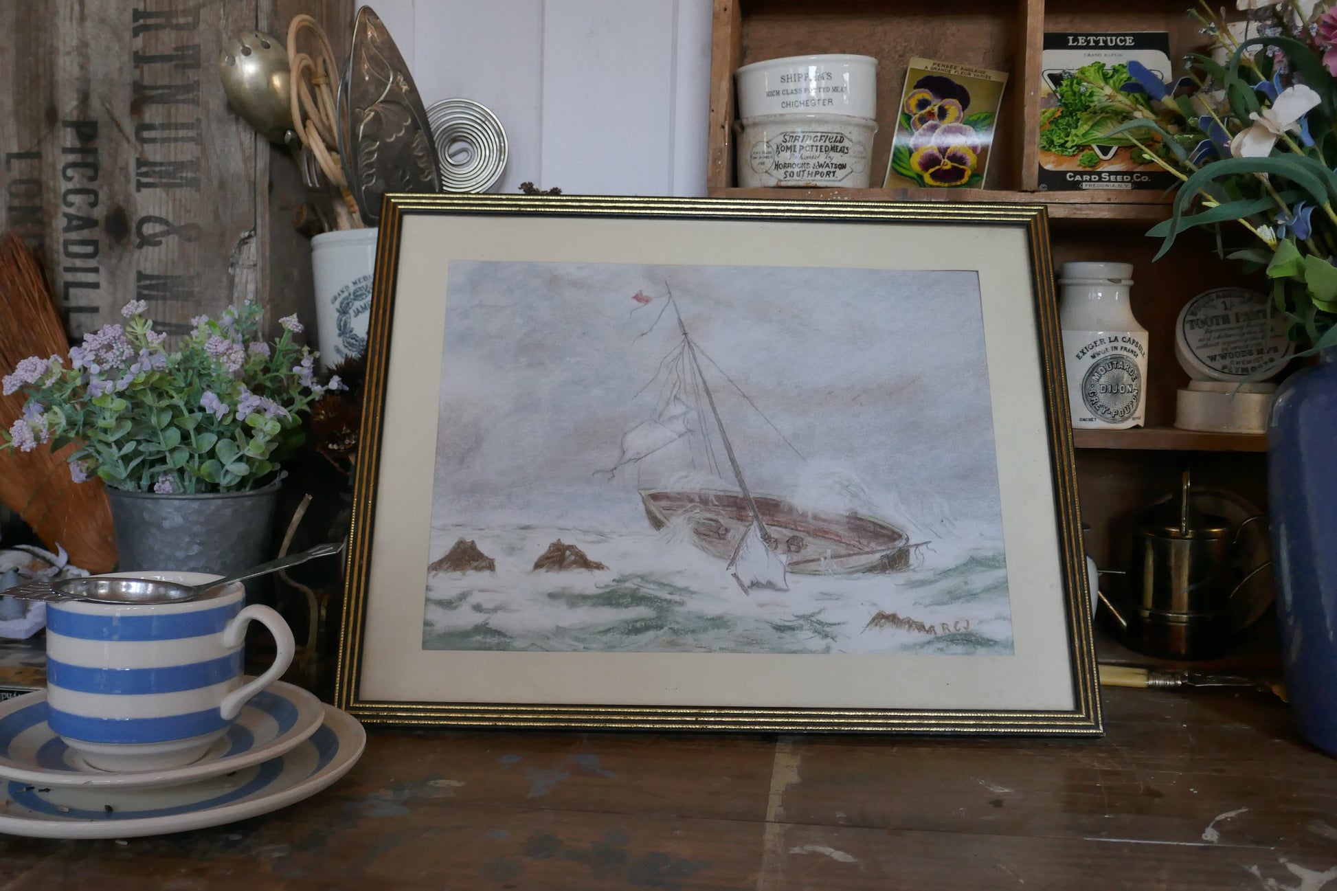 This beautiful watercolour and has wonderful detail to it. It is of a ship wreck. Painted by a Devon amateur artist.