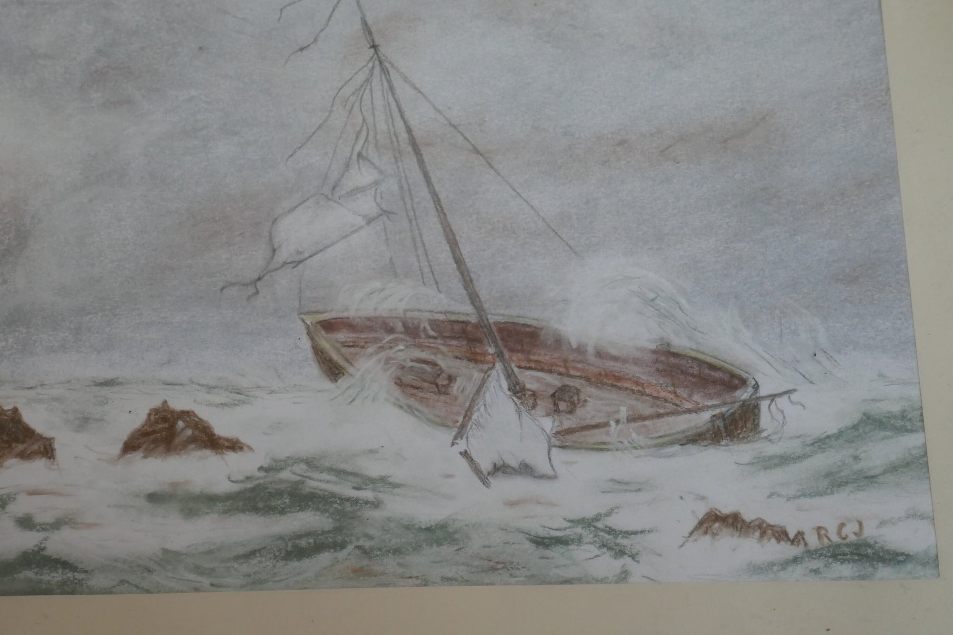 A pretty framed vintage water colour of a rough seascape ship wreck.