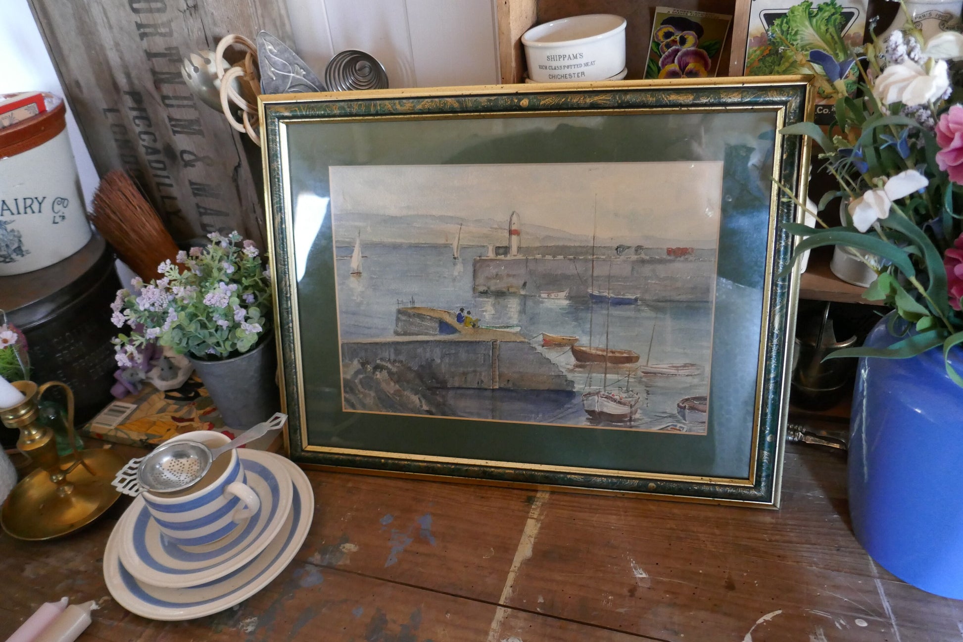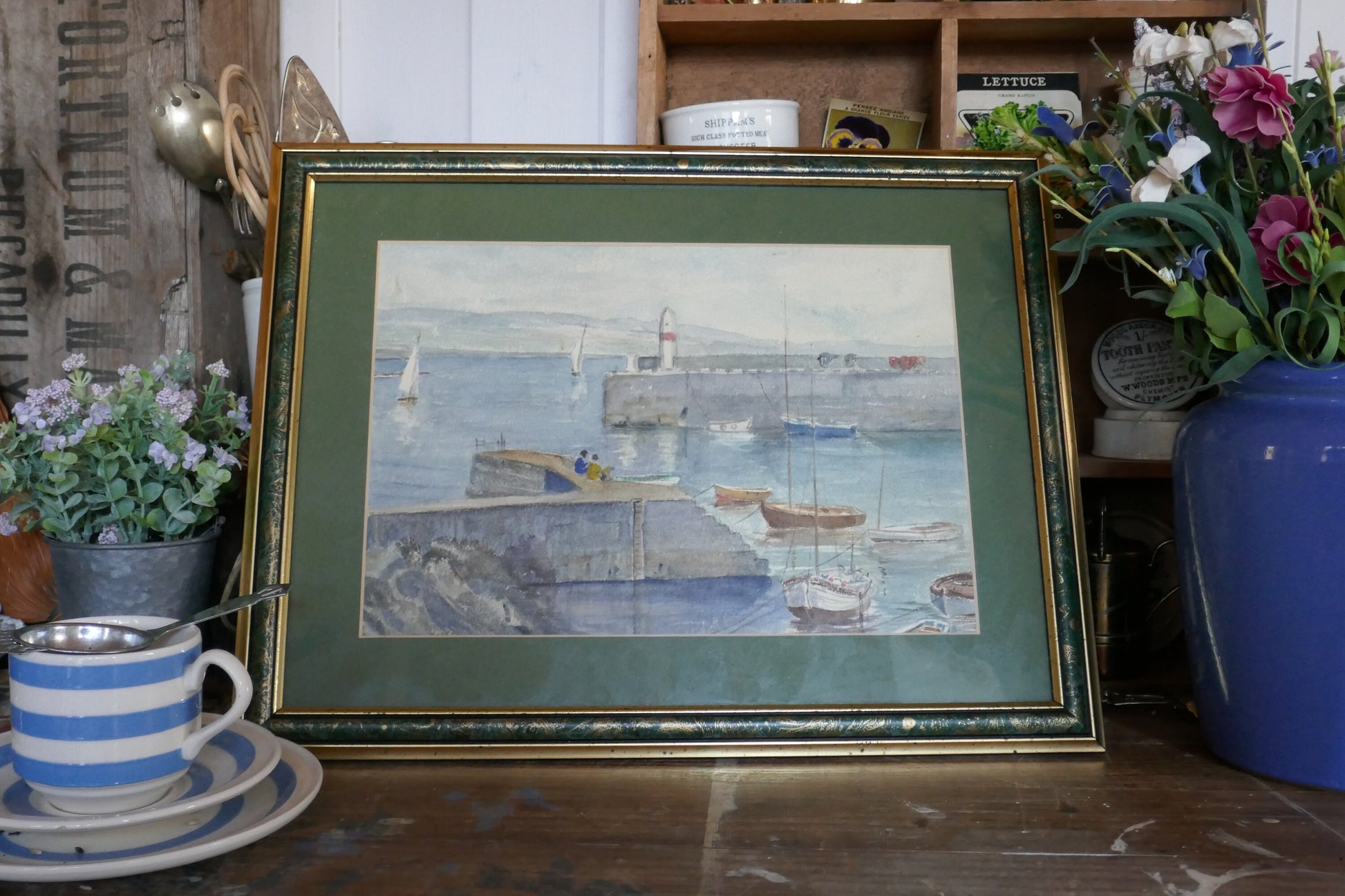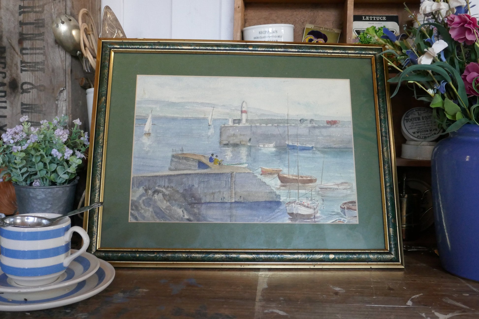 A pretty framed vintage water colour of a lovely English seaside scene.