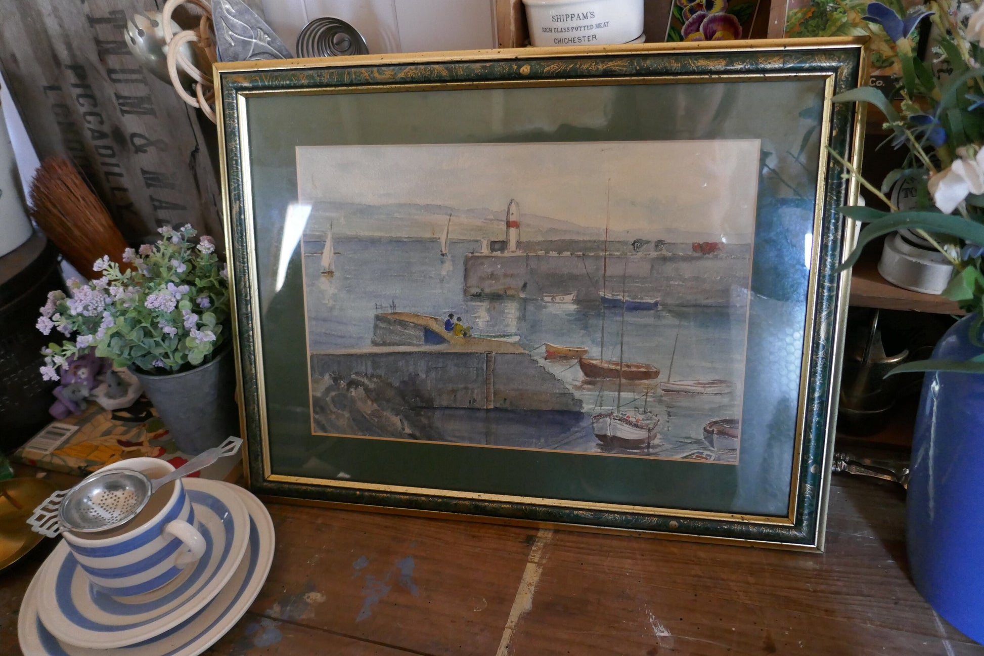 This beautiful watercolour is very well painted and has wonderful detail to it. It is a coastal scene, we aren't sure where the painting is of but it looks like St Ives in Cornwall England to us!