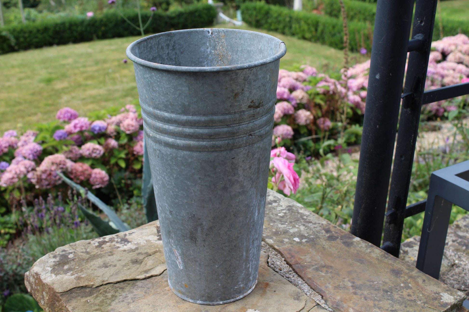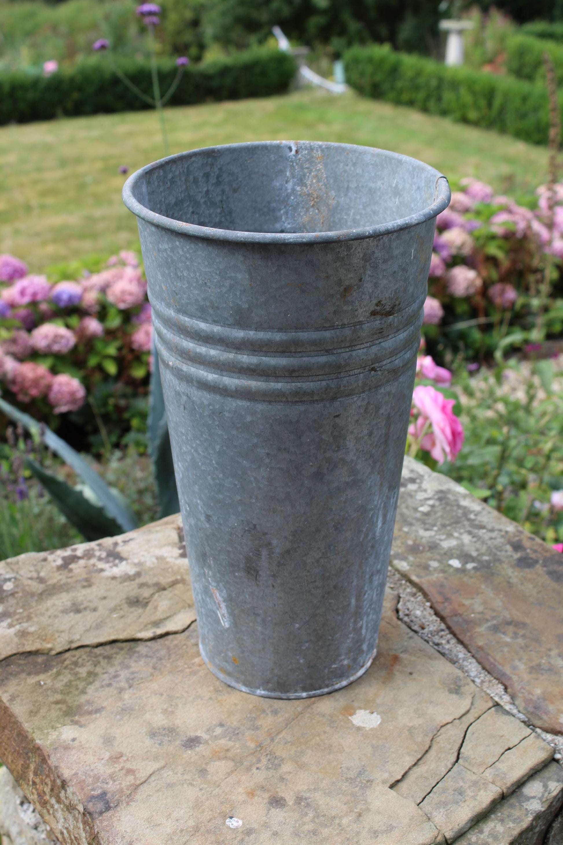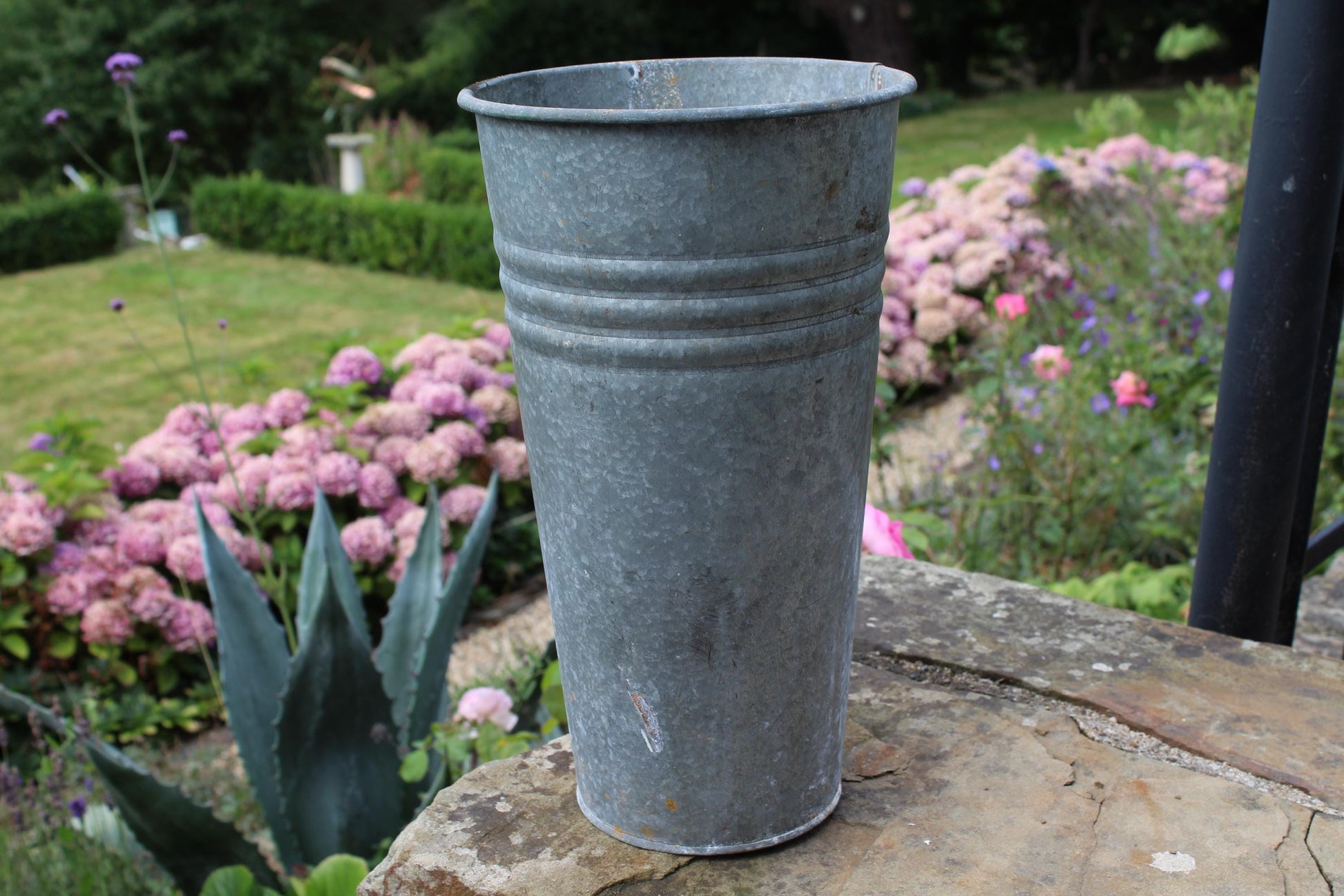 This vintage zinc galvanised florists flower pot would have been used to display flowers in a florist and would make a fantastic garden planter. Fill with lavender or flower bulbs for a very pretty shabby chic look. Would also look amazing as a cut flower vase.