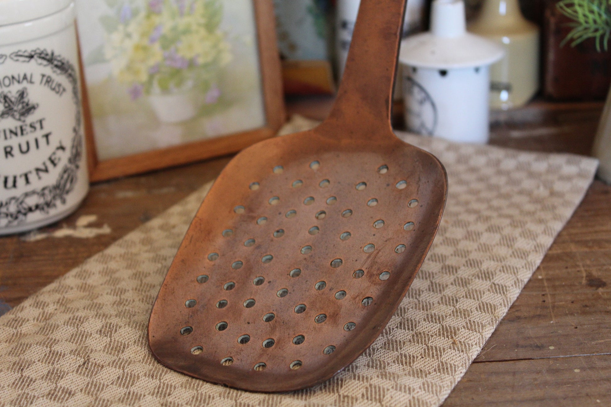 Vintage French Copper Ladle, Copper Kitchen Utensil, Vintage Kitchen Utensil, Kitchen Utensil, Copper Kitchen Spoon, Copper Strainer Spoon