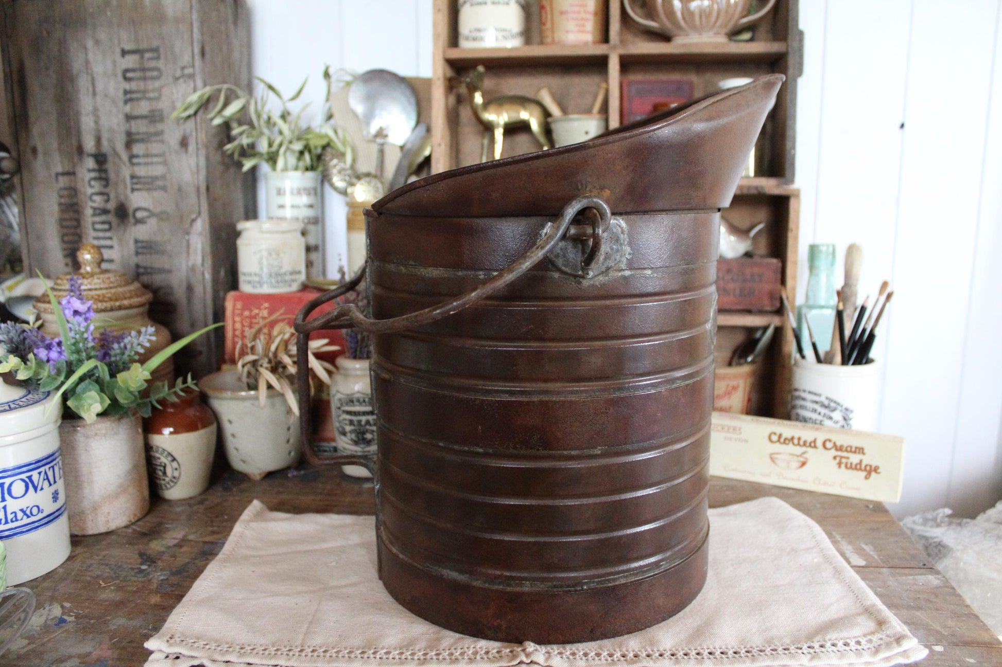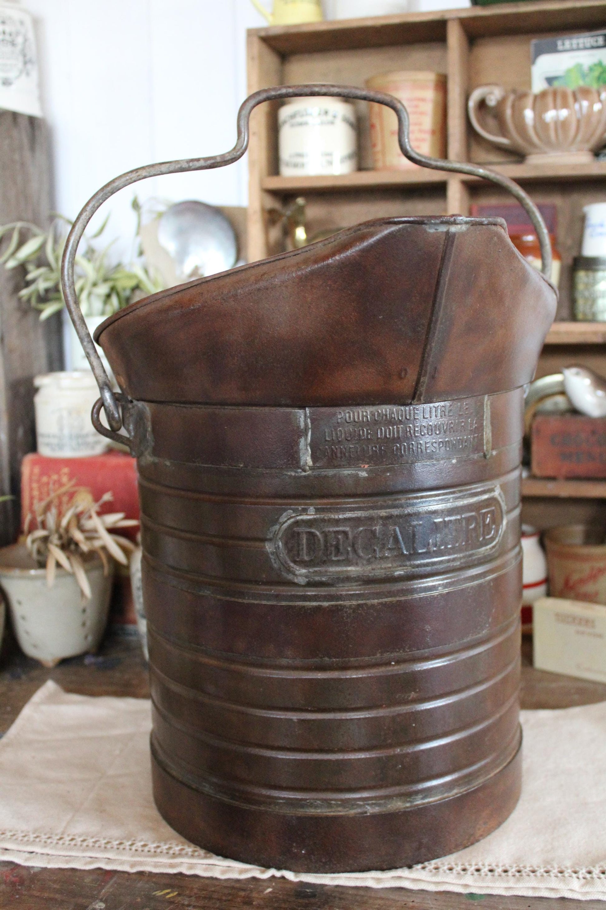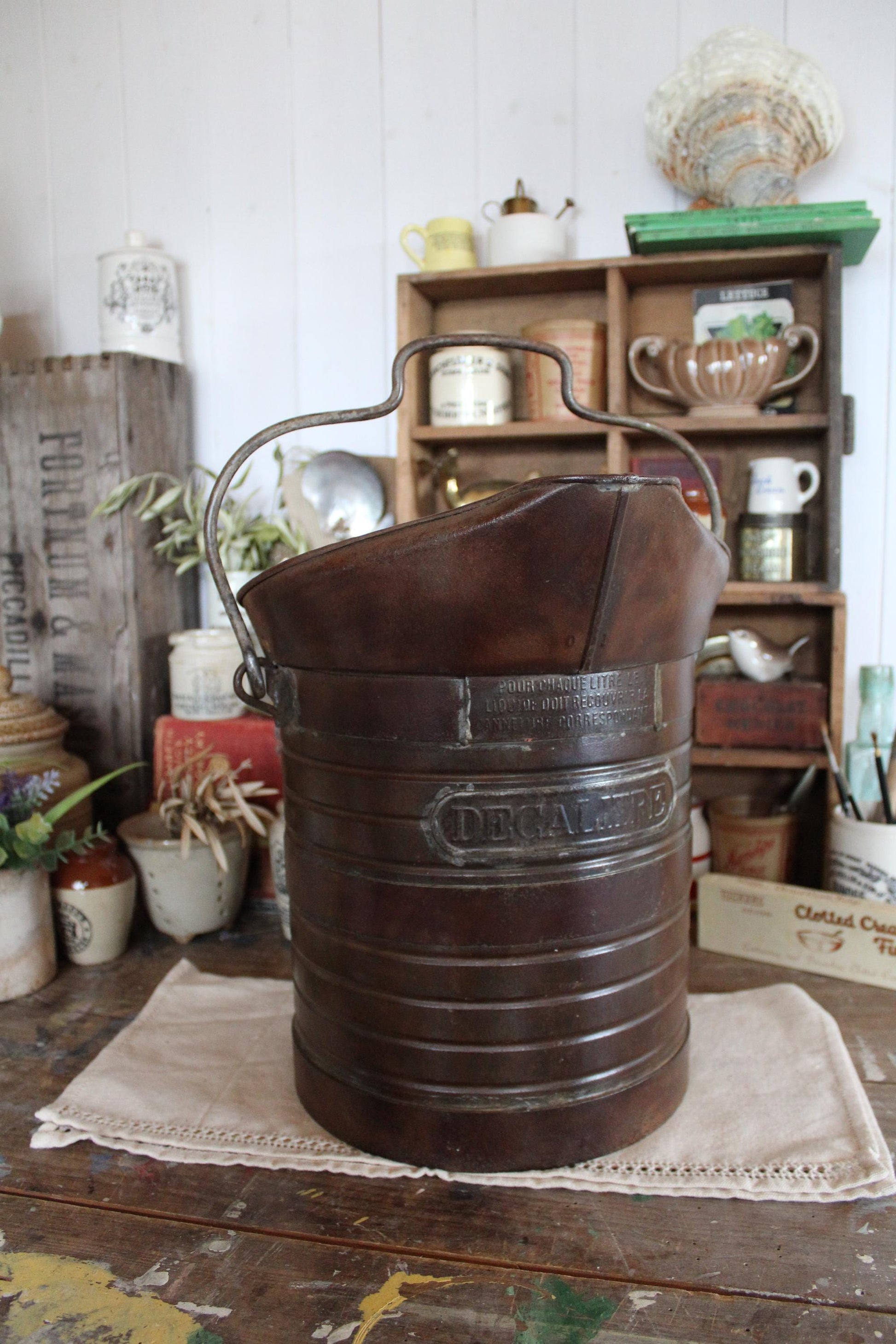 Vintage French Decalitre Bucket, French Wine Jug, Vintage French Bucket, Vintage Coal Bucket, Coal Scuttle, Kindling Bucket Log Basket