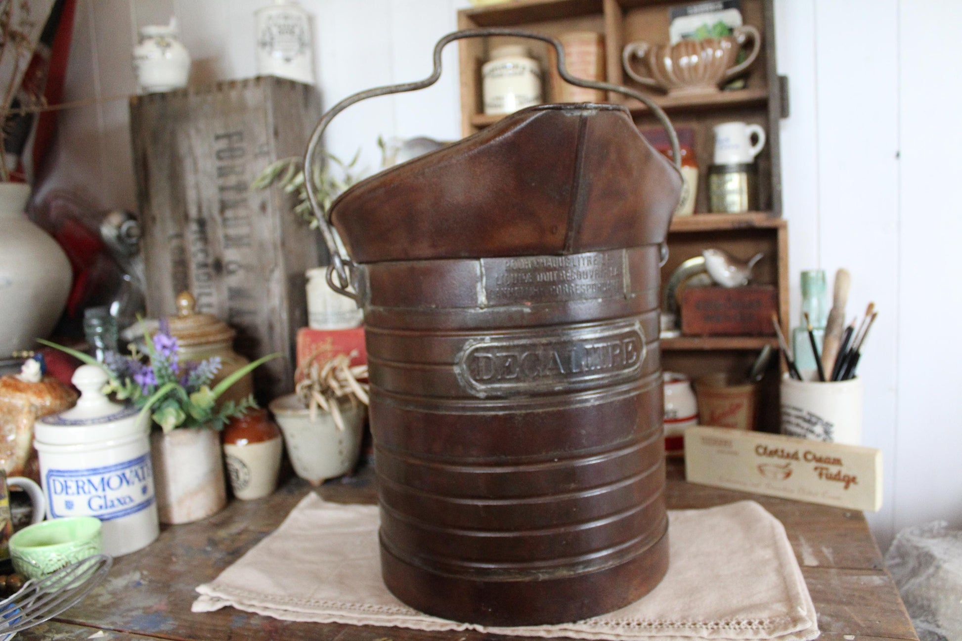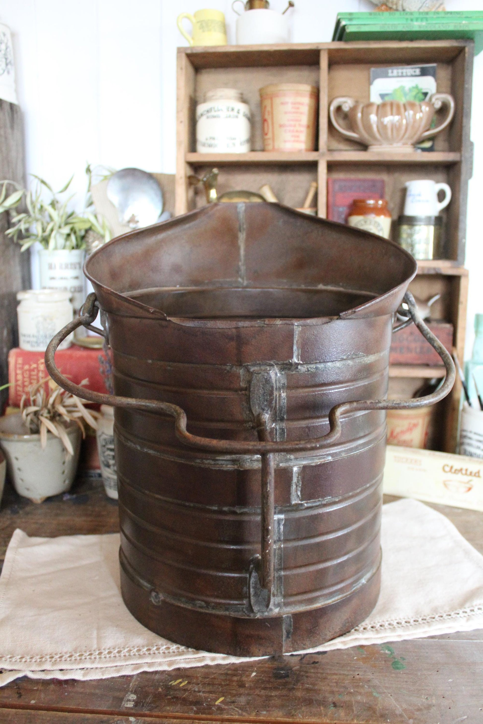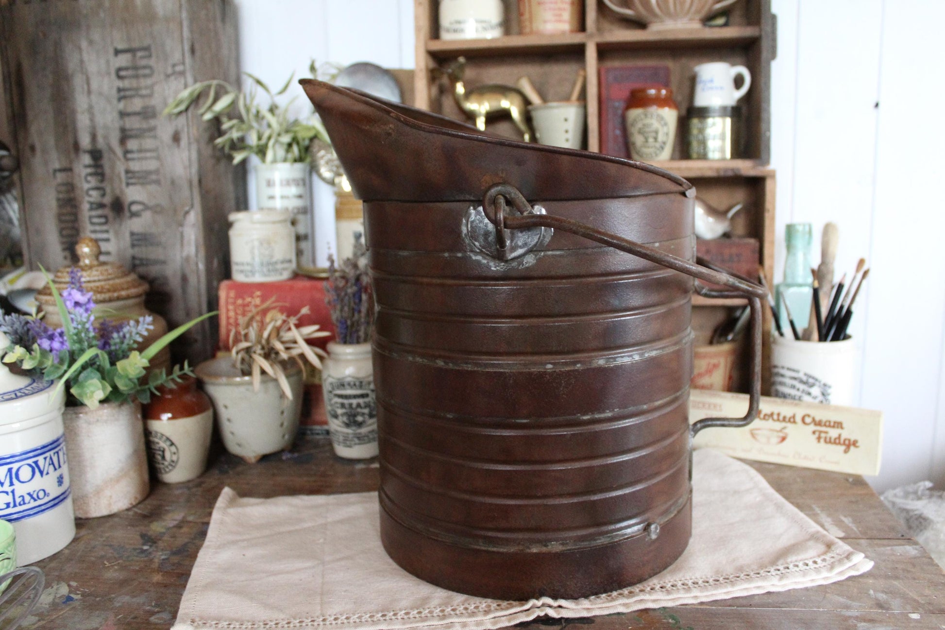 Vintage French Decalitre Bucket, French Wine Jug, Vintage French Bucket, Vintage Coal Bucket, Coal Scuttle, Kindling Bucket Log Basket