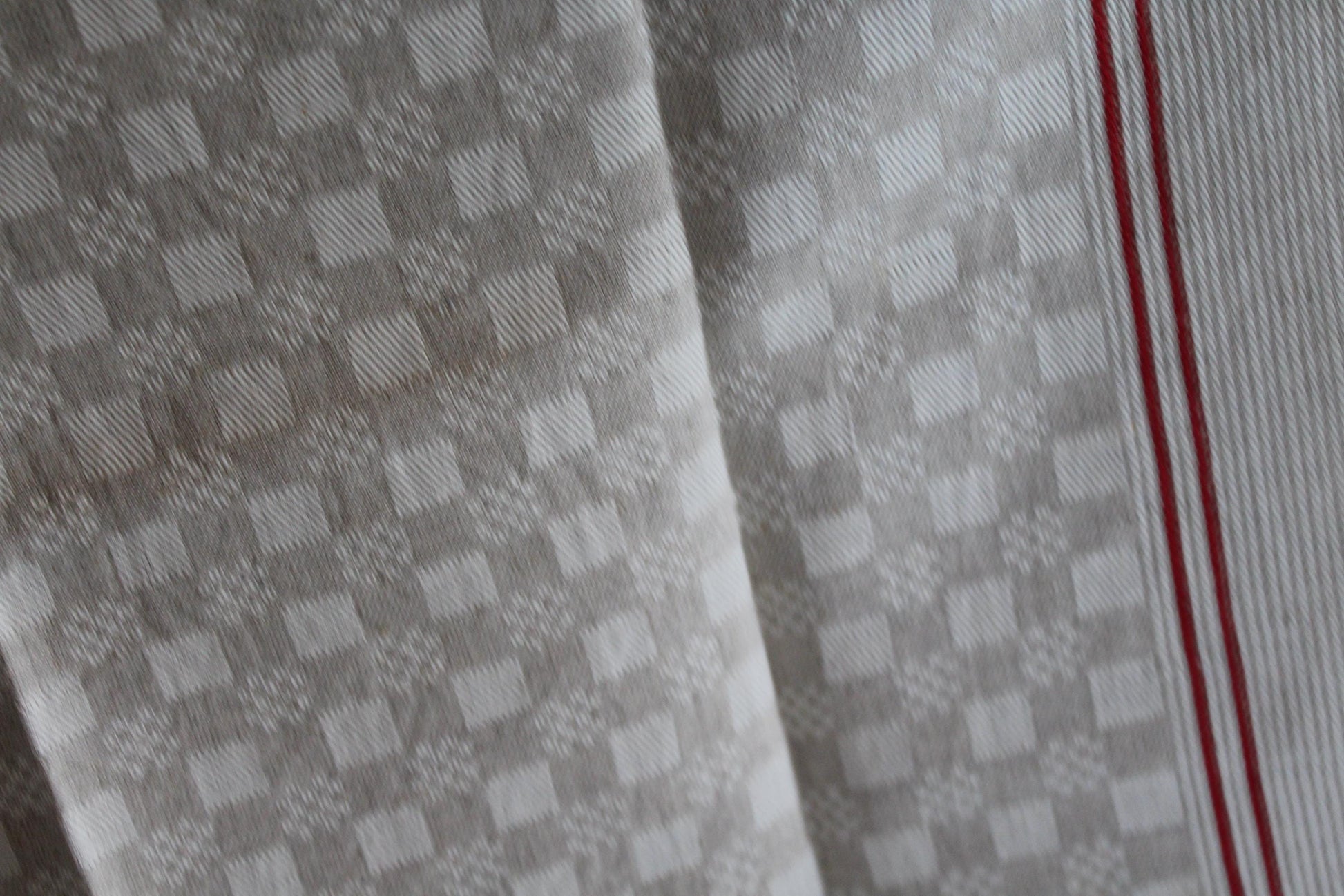 A lovely unused thick French vintage linen tea towel with original red line and checked pattern and original monogram detailing.