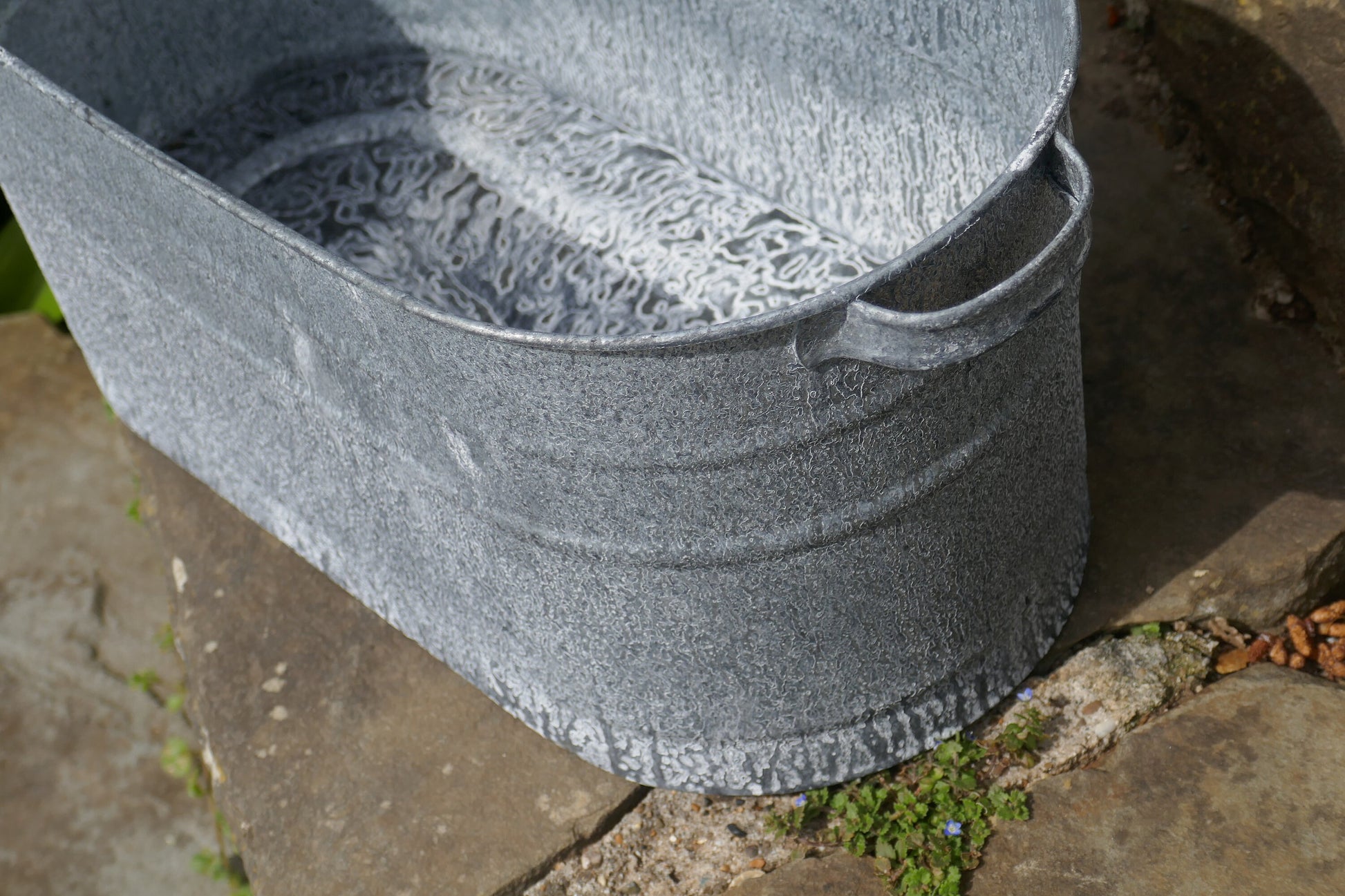 vintage zinc galvanised planter, perfect for the kitchen window sill, outside as a window box or for a outdoor table or smaller garden. Fill with lavender, flower bulbs or herbs for something a little different that a boring pot from a garden centre!
