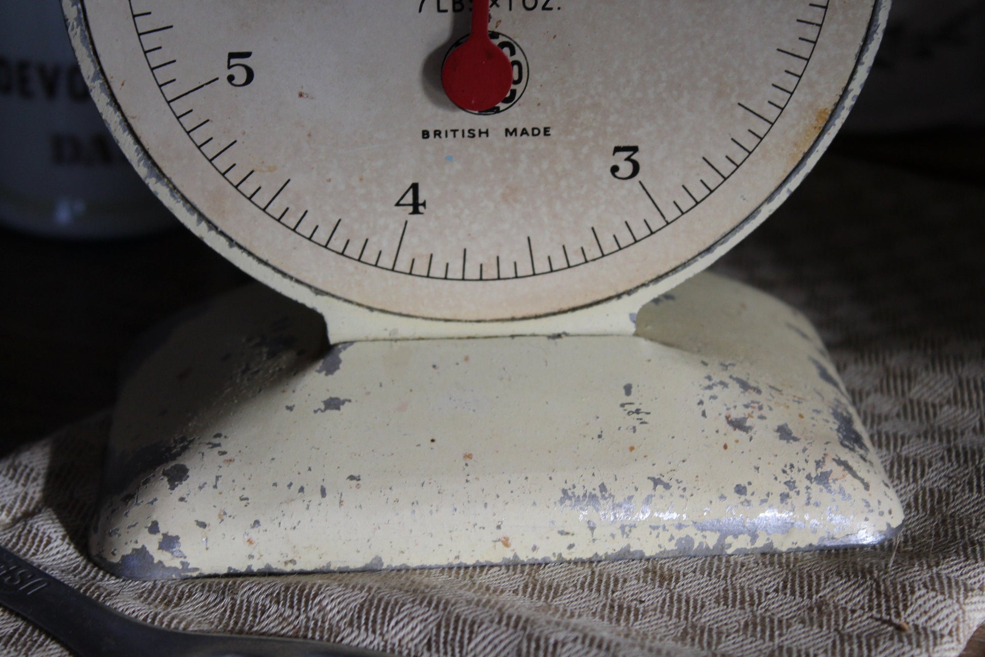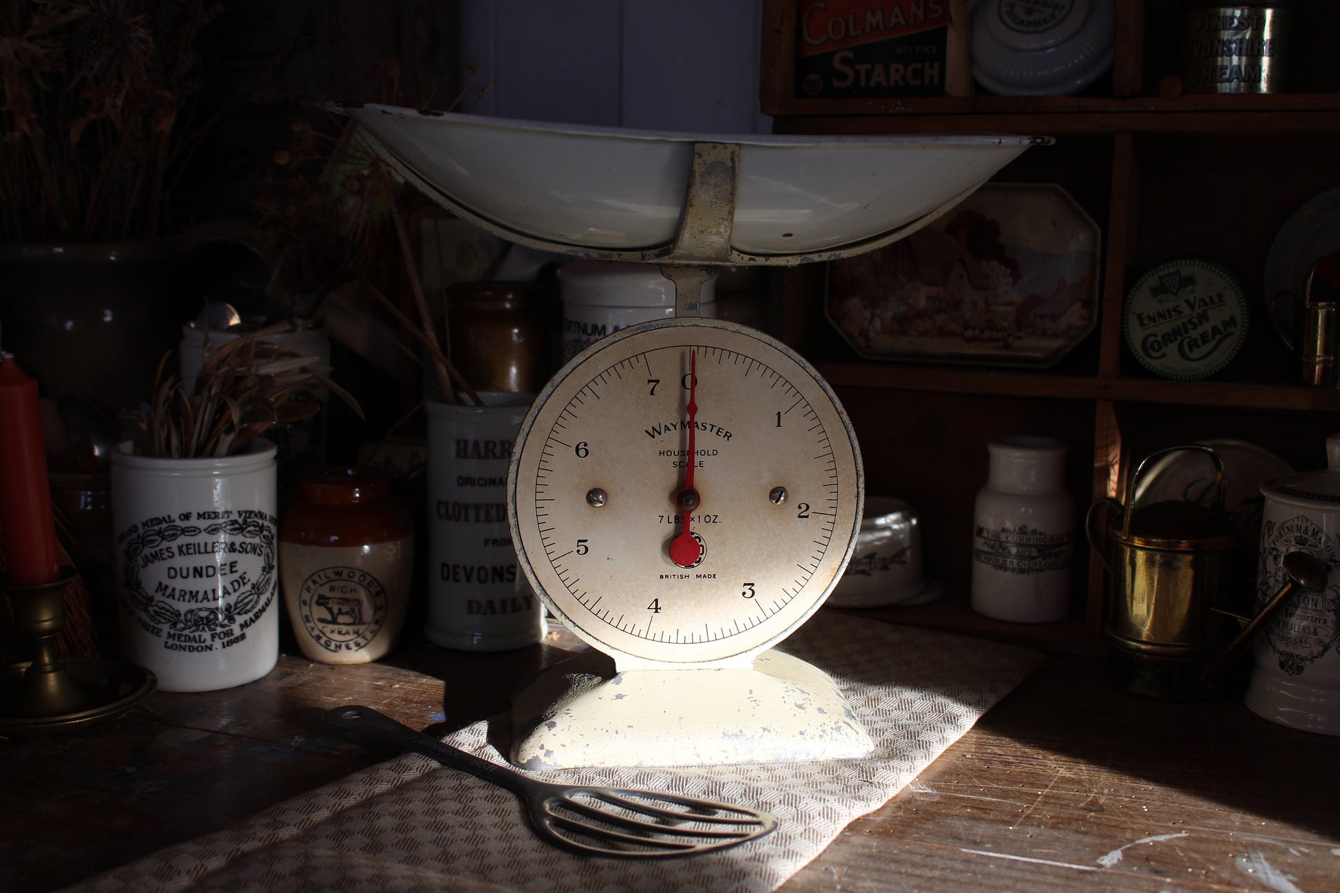 Vintage Pastel Cream Kitchen Scales - Waymaster Brand - White Kitchen Scale - Vintage Scale - Rustic Scale - English Scale - Kitchen Scales