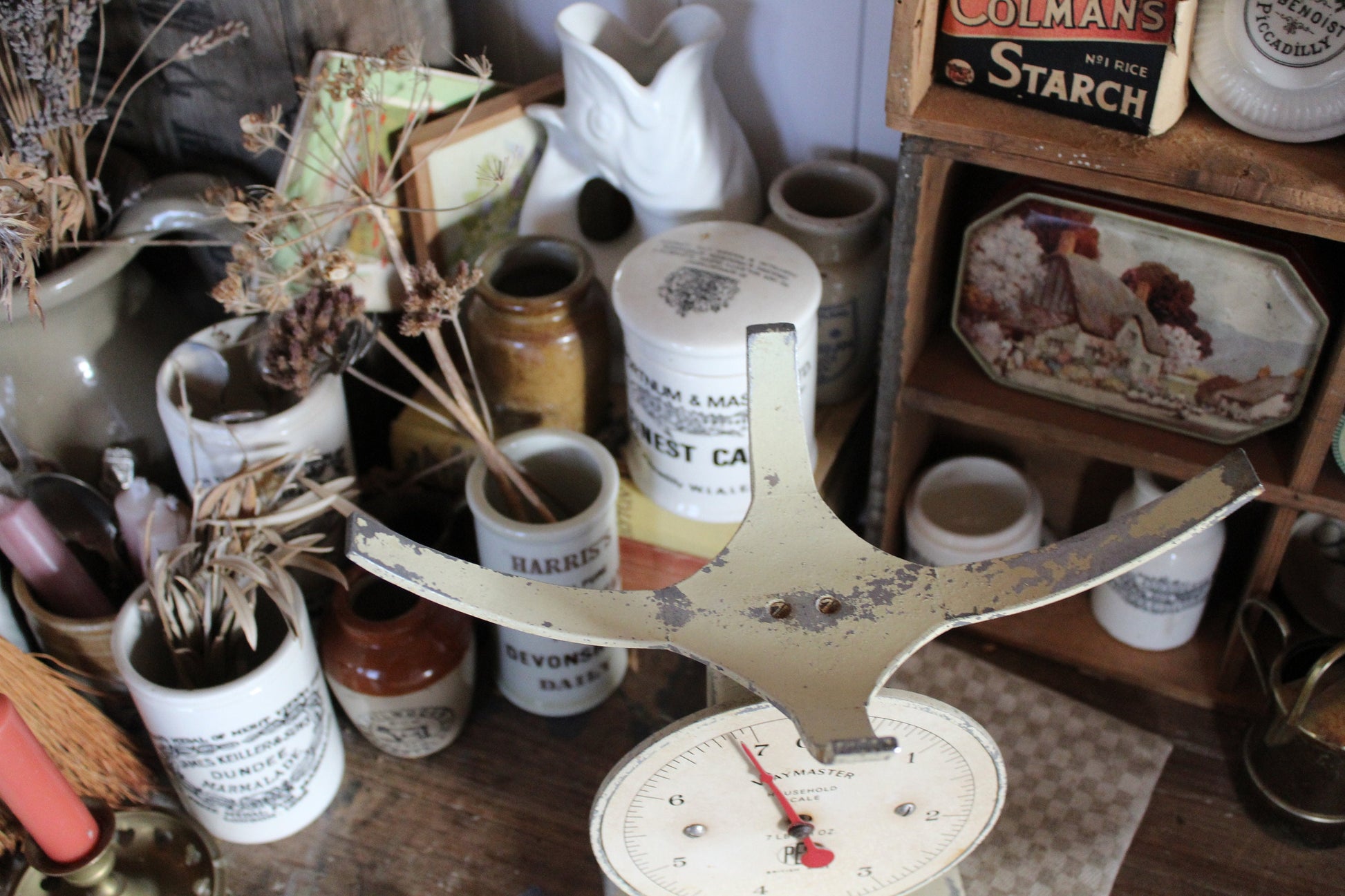 This wonderful set of vintage weighing scales are a lovely addition to a kitchen.