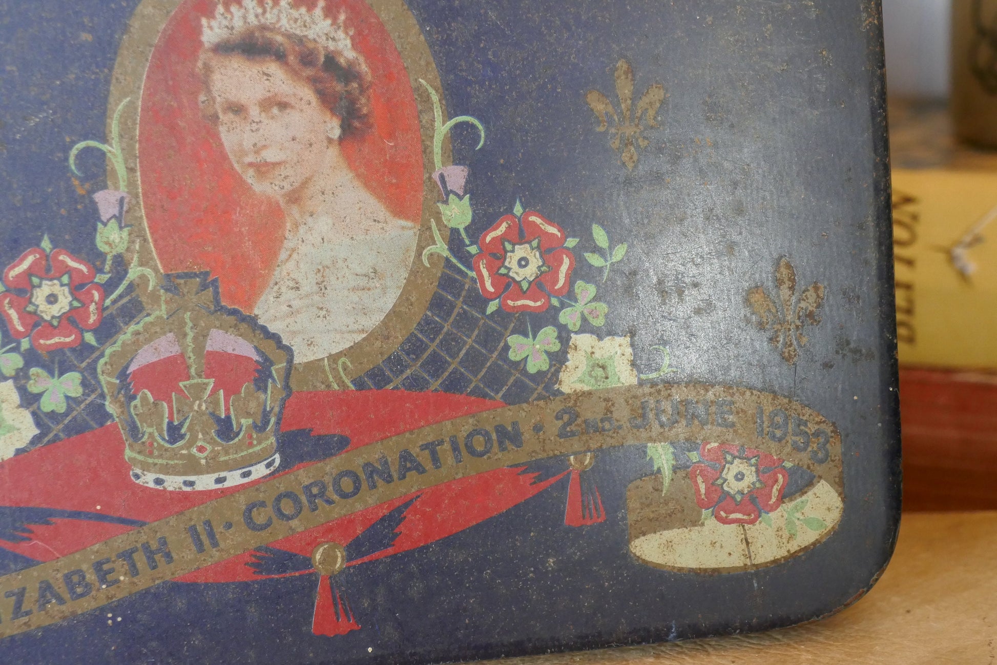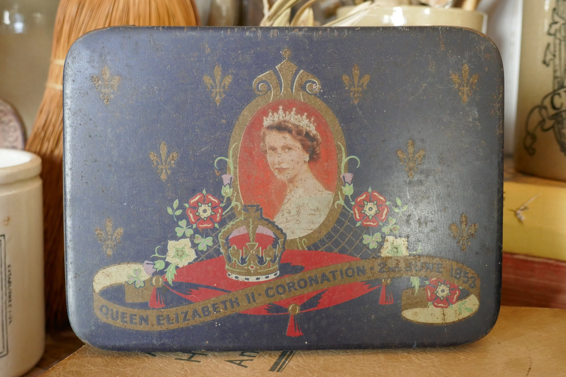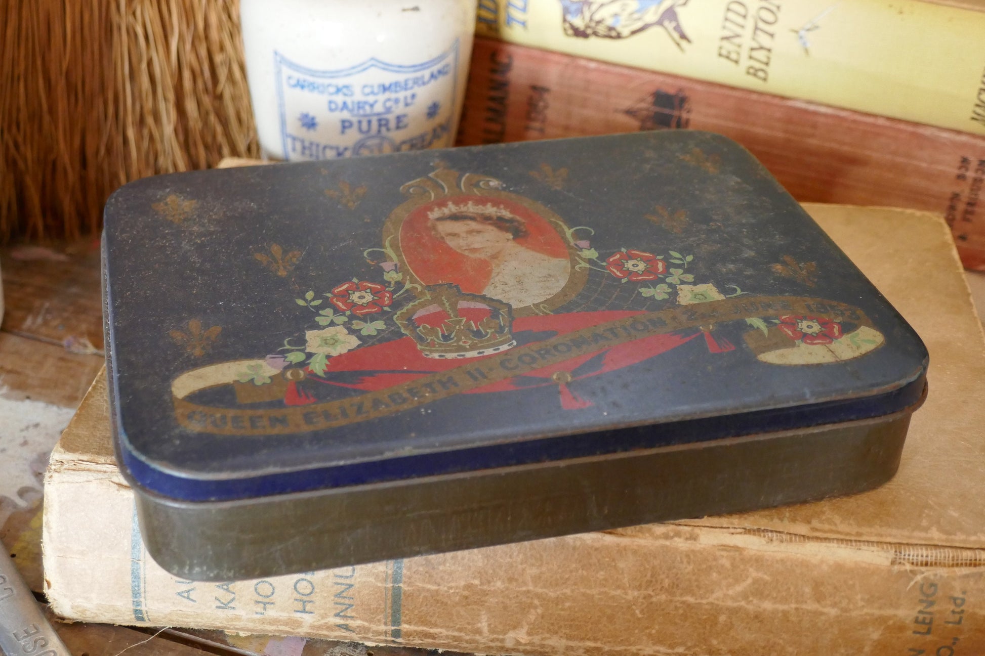 Vintage royalty sweetie Tin made in the 1950 to celebrate Queen Elizabeth's coronation.