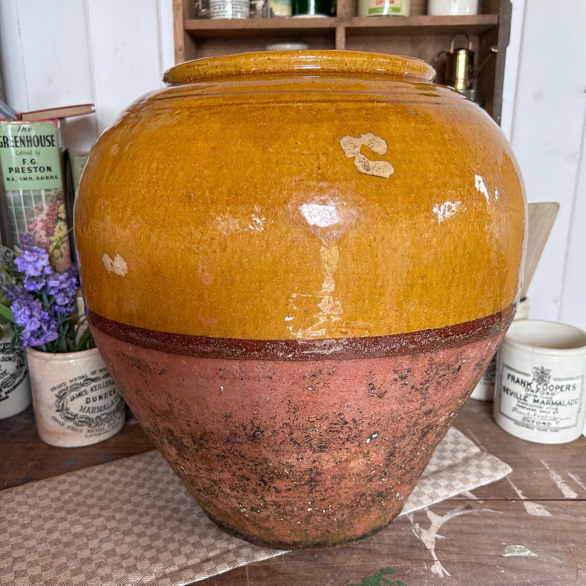 This lovely jar would have been used for preserving everything and anything in the French countryside. Now makes a lovely decorators piece.