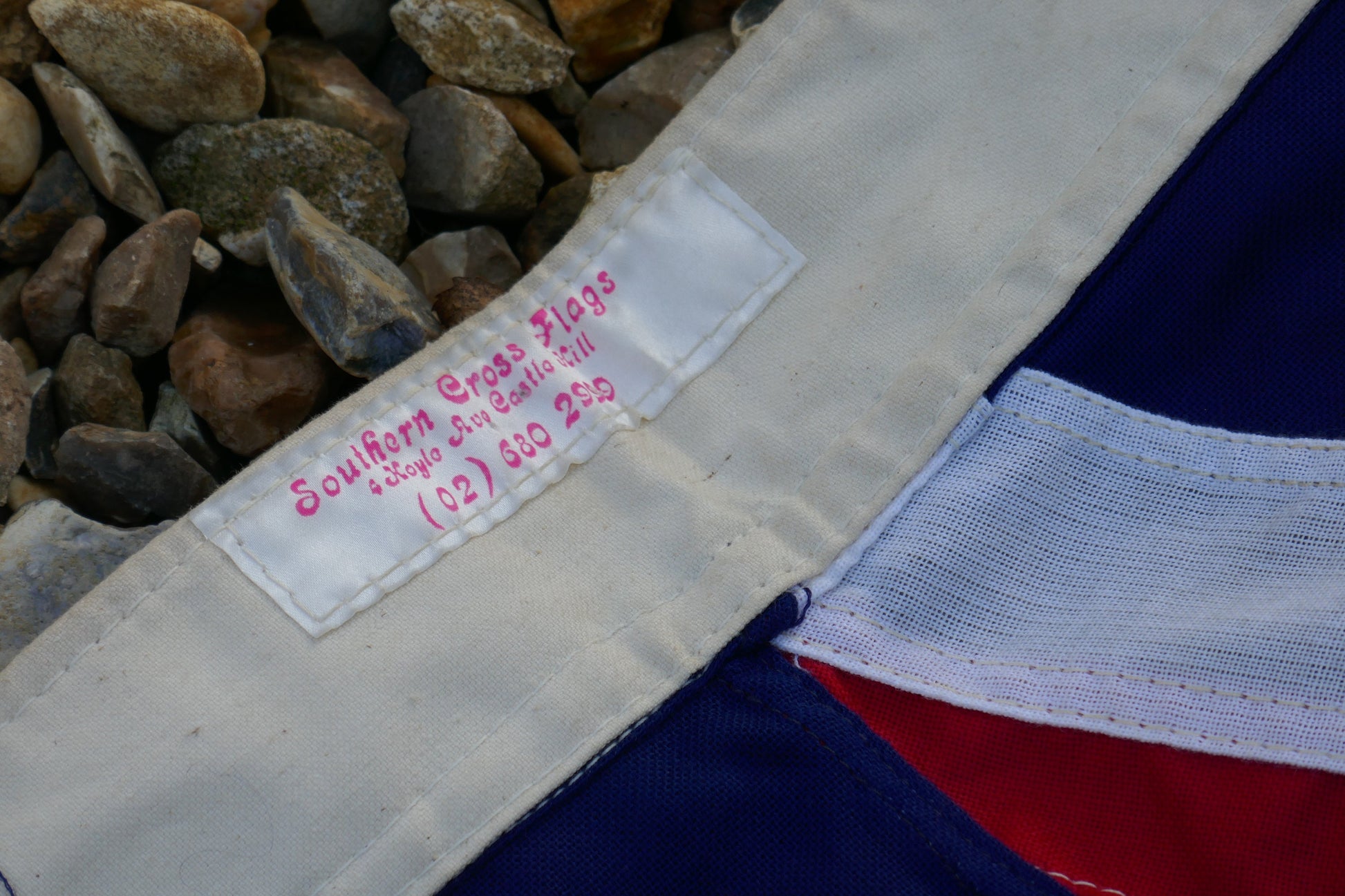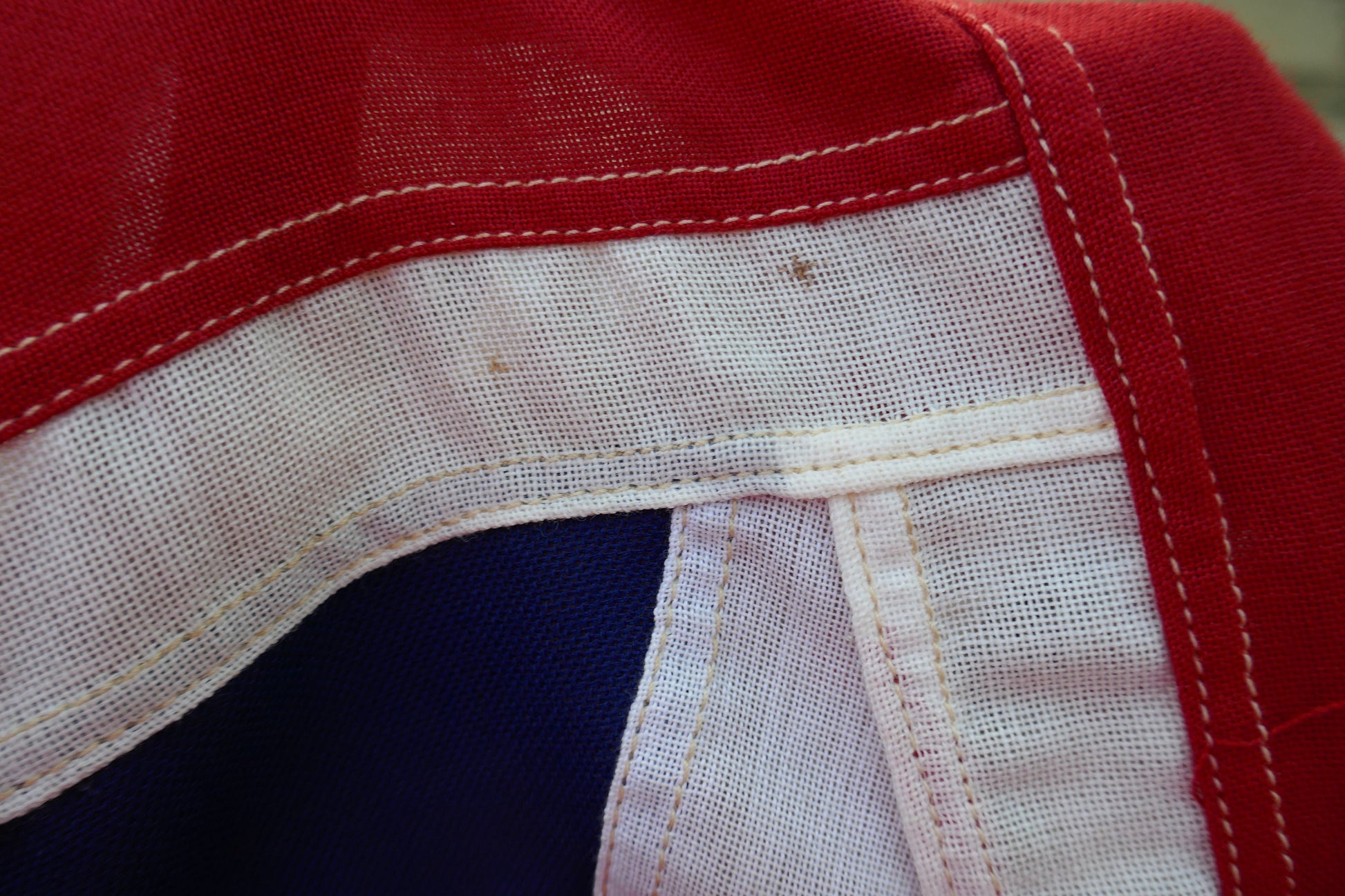 A unusual find in the UK, this flag has a lovely patina and the colours are super bright at clear. It has no holes or tears just some light some light surface wear and minimal stains. It has the makers label stitched on to it, this is a stitched flag rather than a printed one.